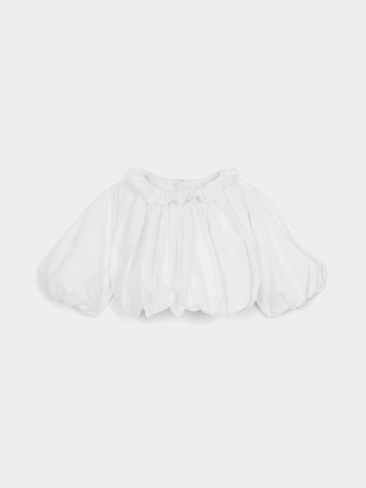 La blouse Ellie pour bébé est le fruit du savoir-faire de la Maison et de Khaite, marque américaine à l’avant-garde du sportswear. Son beau volume est créé par les manches longues et le bas bouffant.