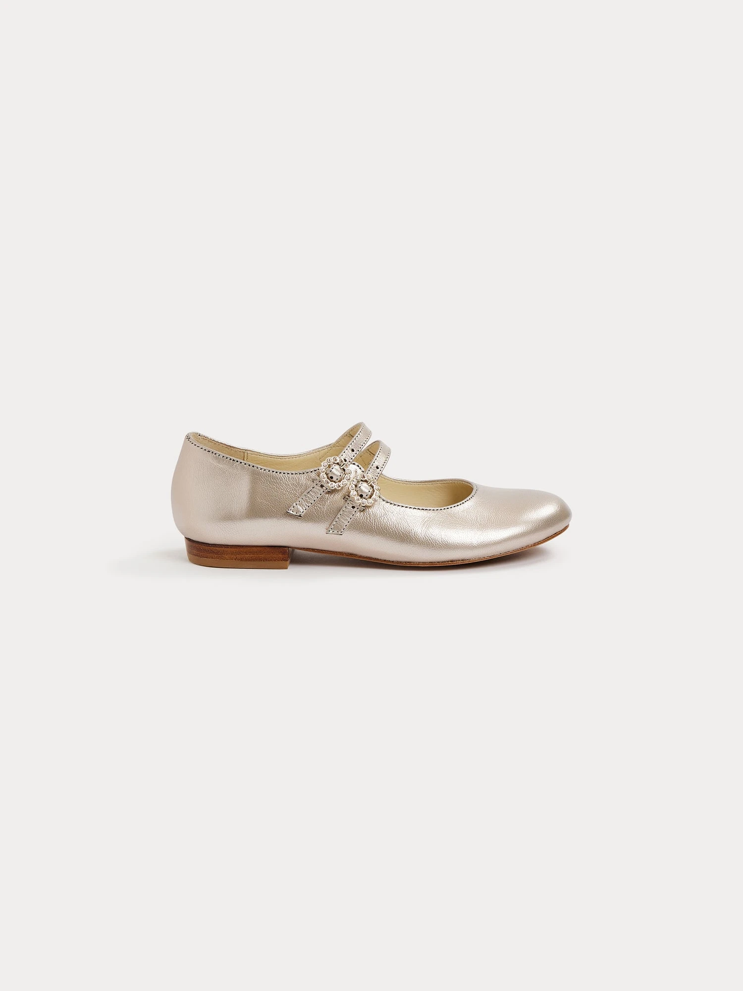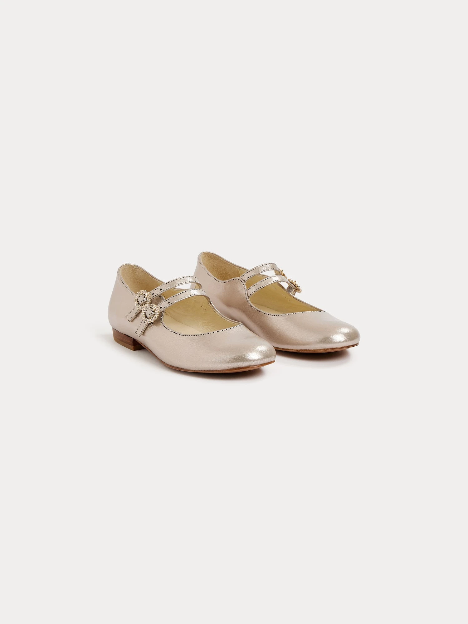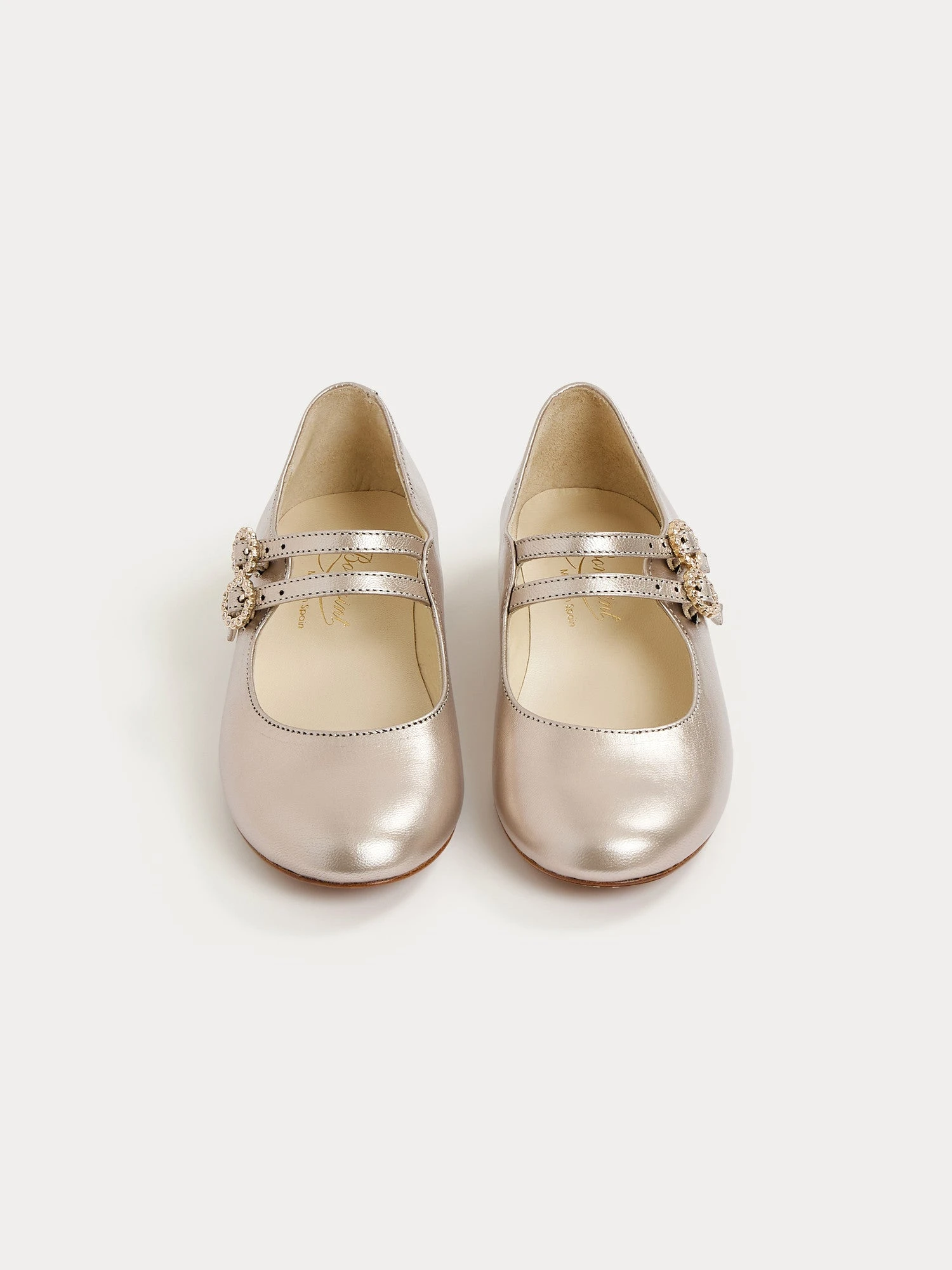 Confectionnées en cuir métallisé, ces babies pour fille Tam sont idéales pour ajouter une touche d’élégance à une tenue de cérémonie. Les brides se ferment à l’aide de boucles ornées de strass.