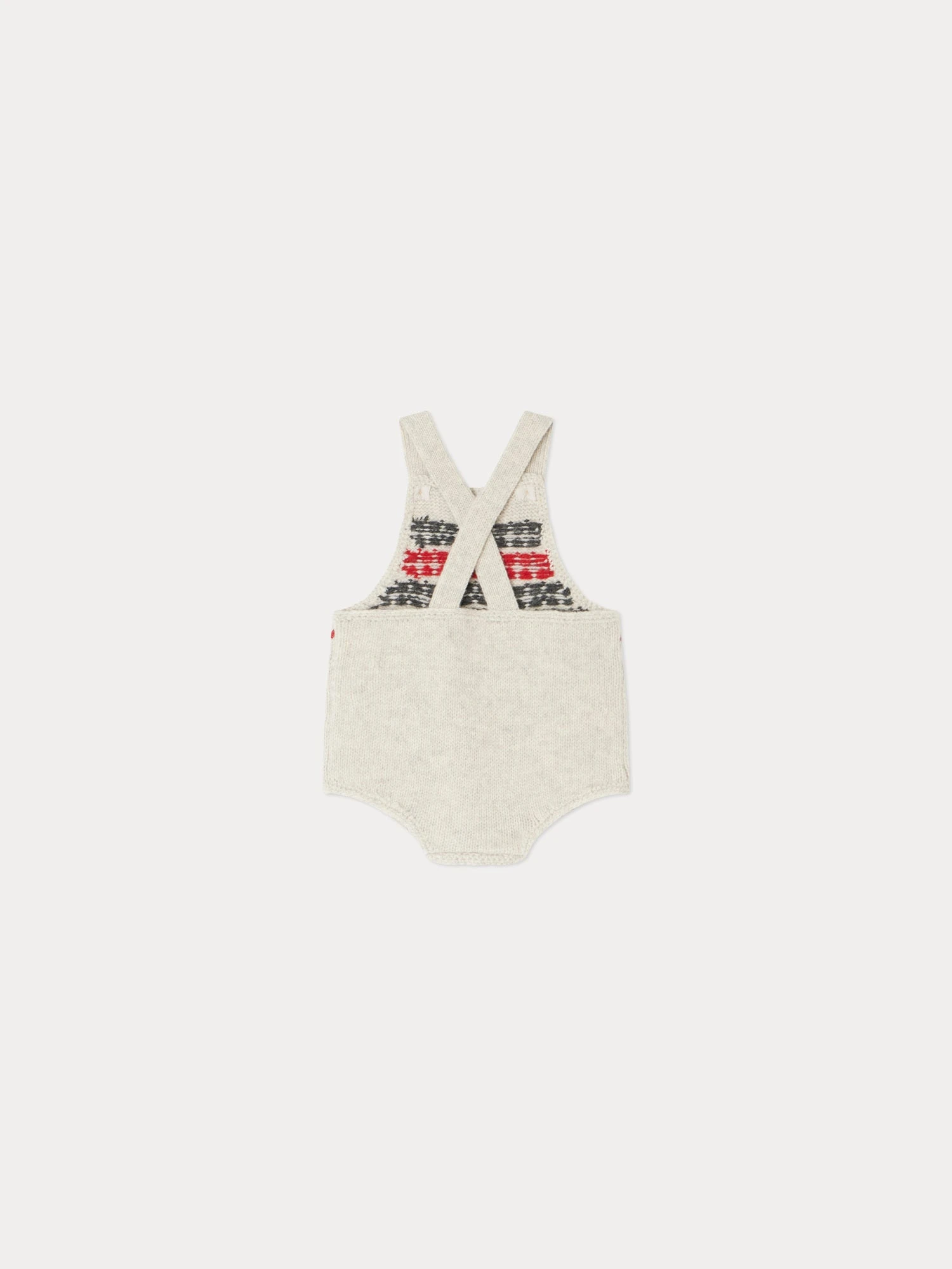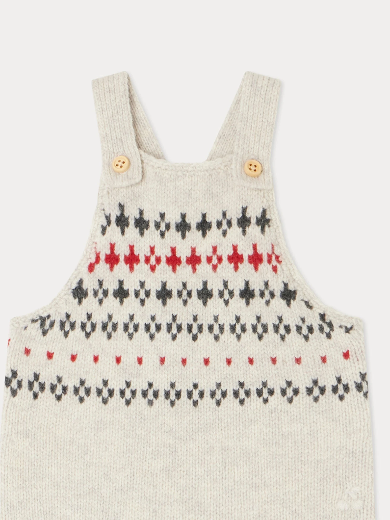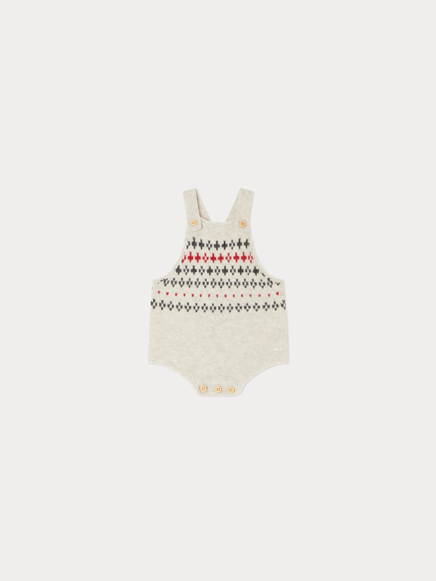 Ornée d’un motif jacquard inspiré des années 70, cette barboteuse Bidelia protège les bébés du froid grâce à sa confection en laine. Ses bretelles croisées participent à un bon maintien.