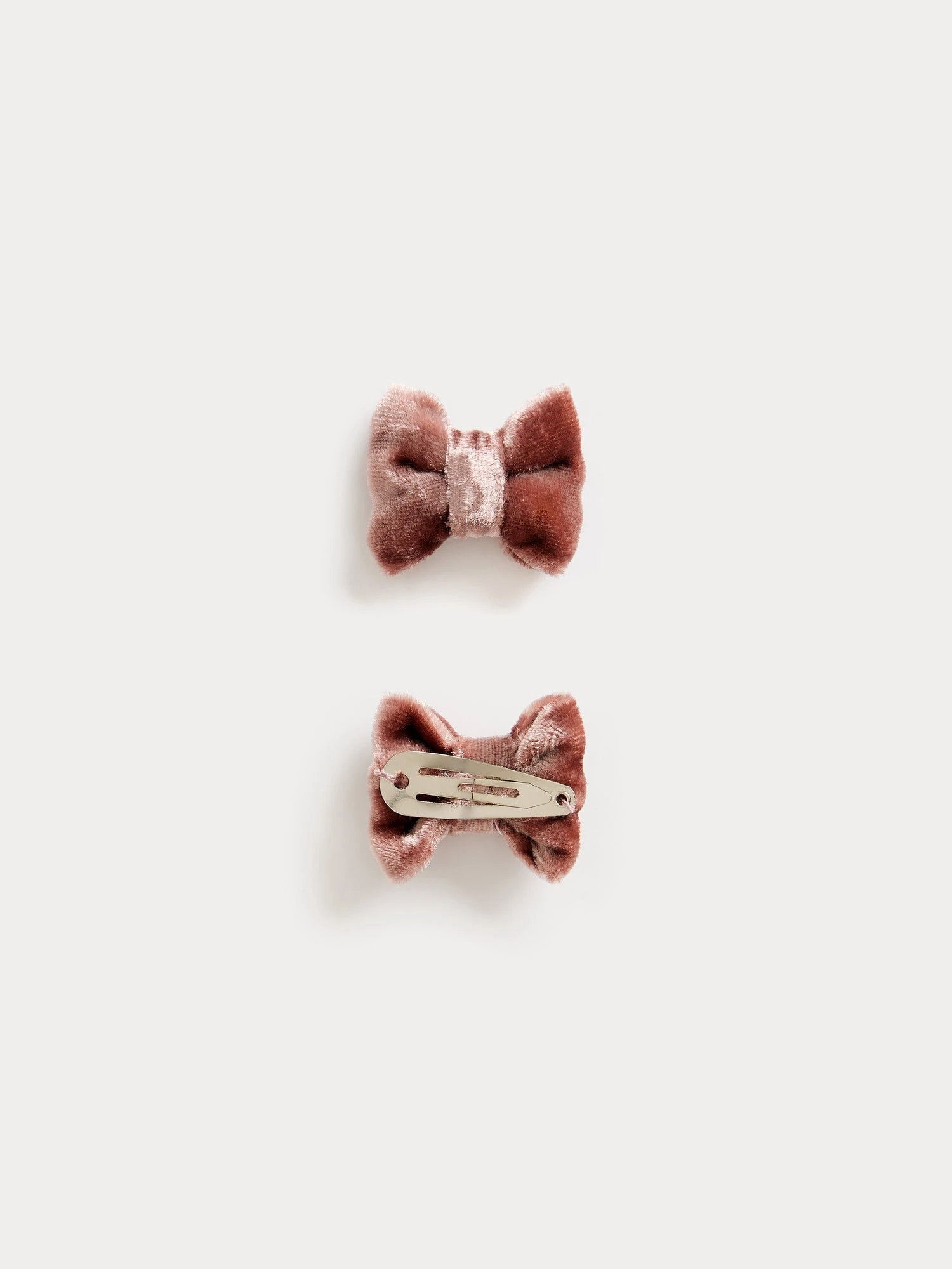 Touche finale d’une tenue, ce lot de deux barrettes Miniclic pour fille retient les mèches rebelles avec élégance. Le clip en métal argenté est recouvert d’un petit nœud plat en velours brillant.