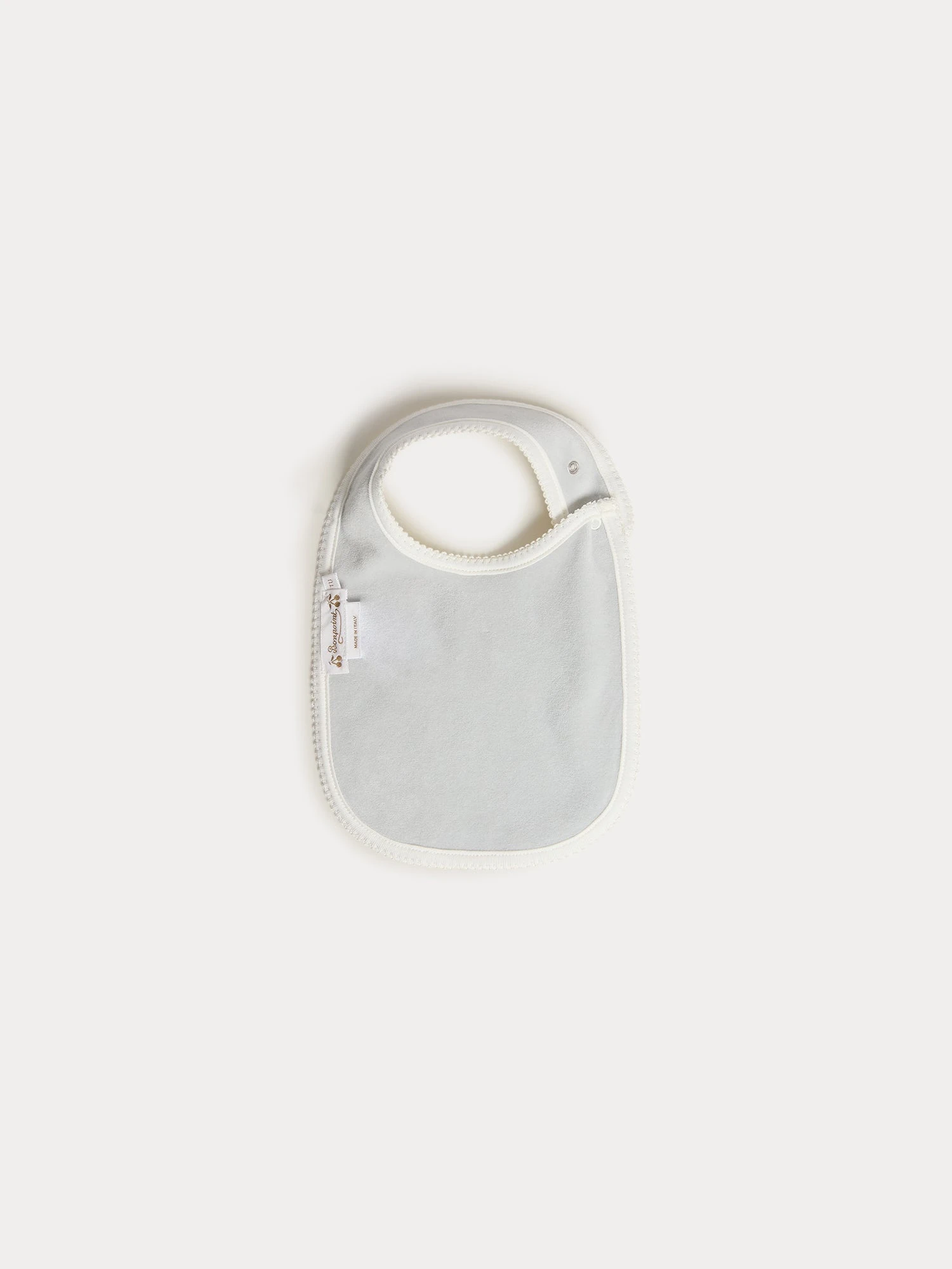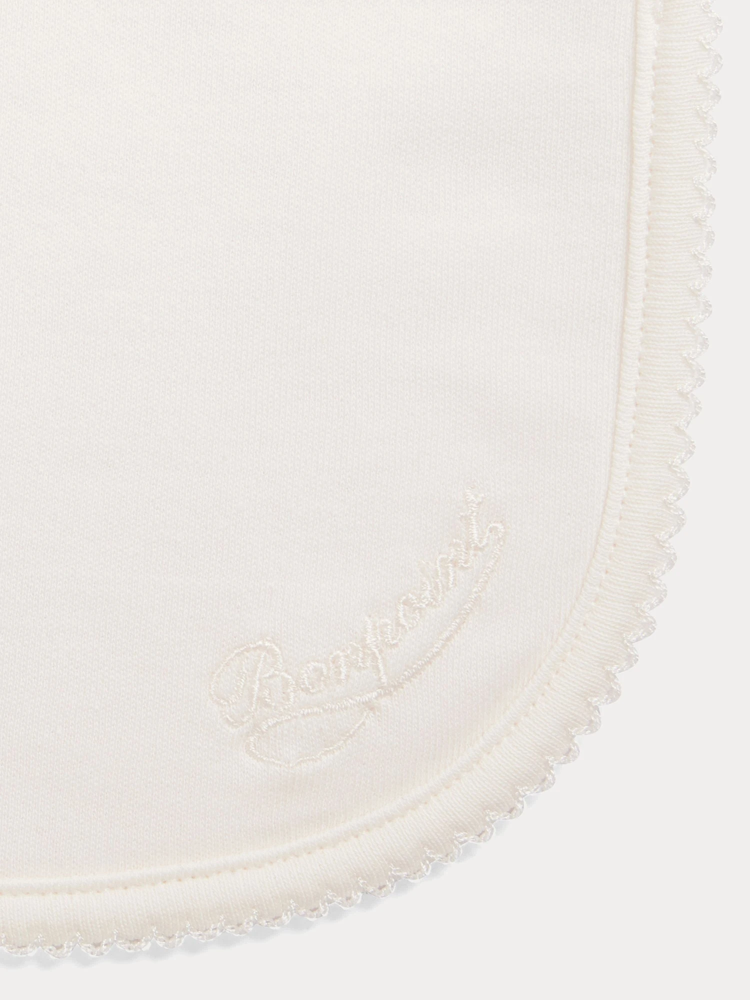 Ce bavoir pour bébé Avibis est très élégant avec ses finitions à picots et sa broderie Bonpoint en ton sur ton devant. Il est confectionné en tissu velours éponge.