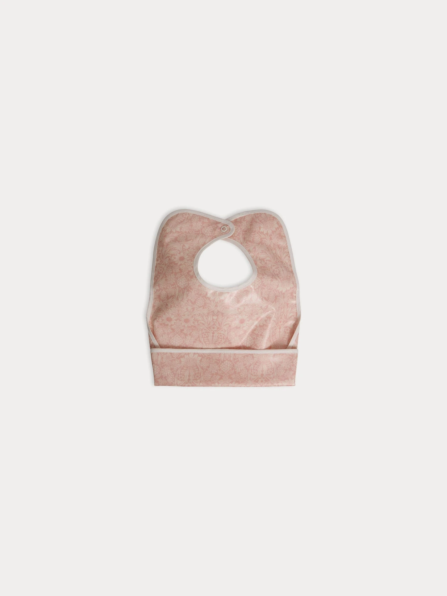 Ce bavoir Clip protège les vêtements de bébé avec son revêtement enduit et ses pressions formant un bac récupérateur. Il est confectionné en tissu Liberty.