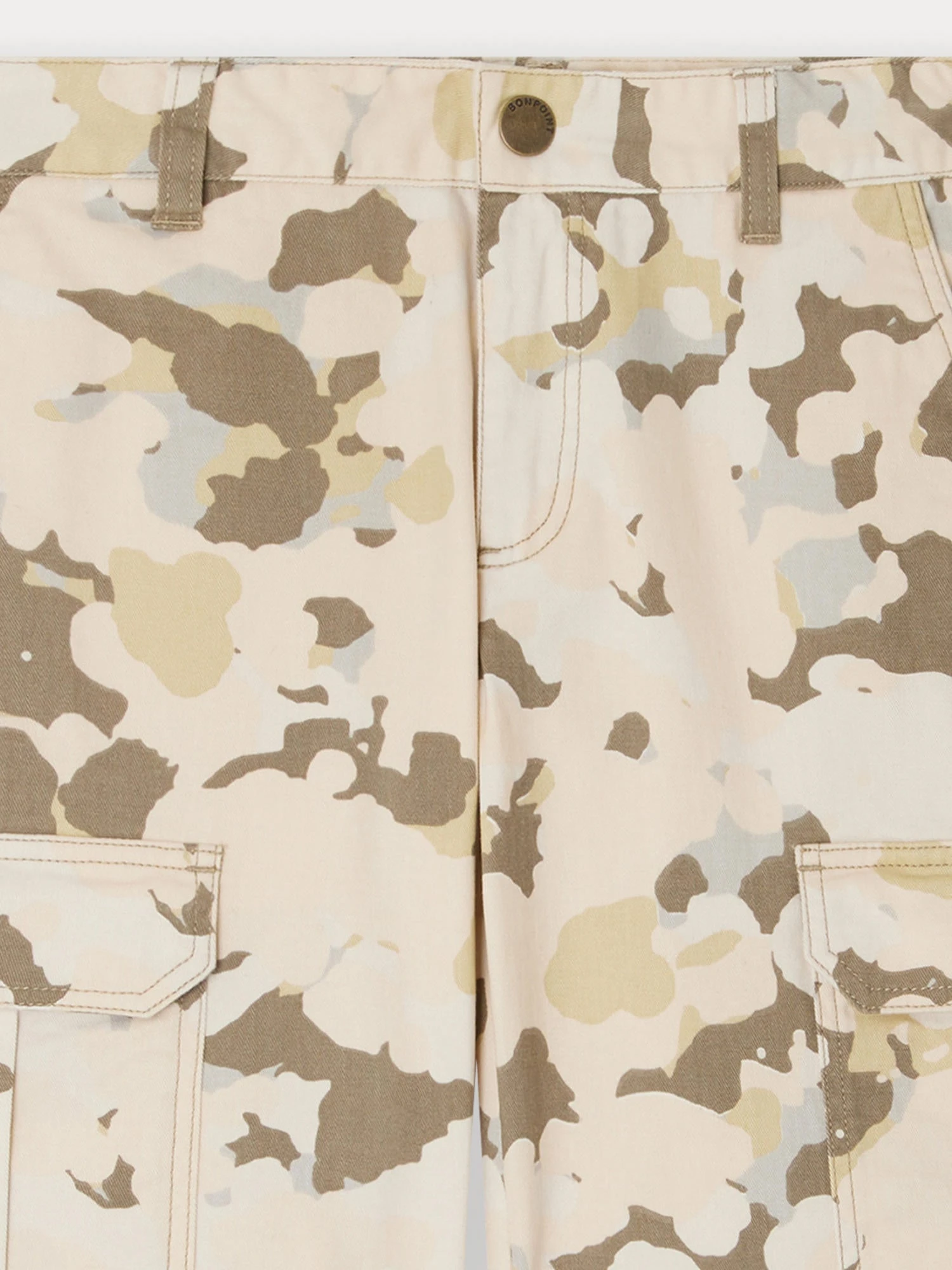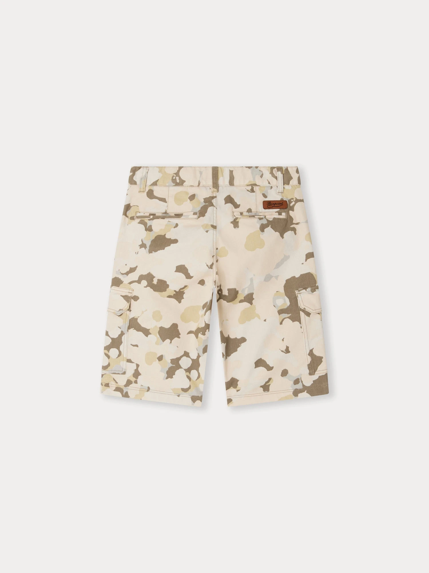 Rehaussé d’un imprimé camouflage, ce bermuda Caiman pour garçon adopte une coupe cargo multipoches. Le modèle est signé d’un bouton gravé Bonpoint et d’un jacron en cuir au dos.