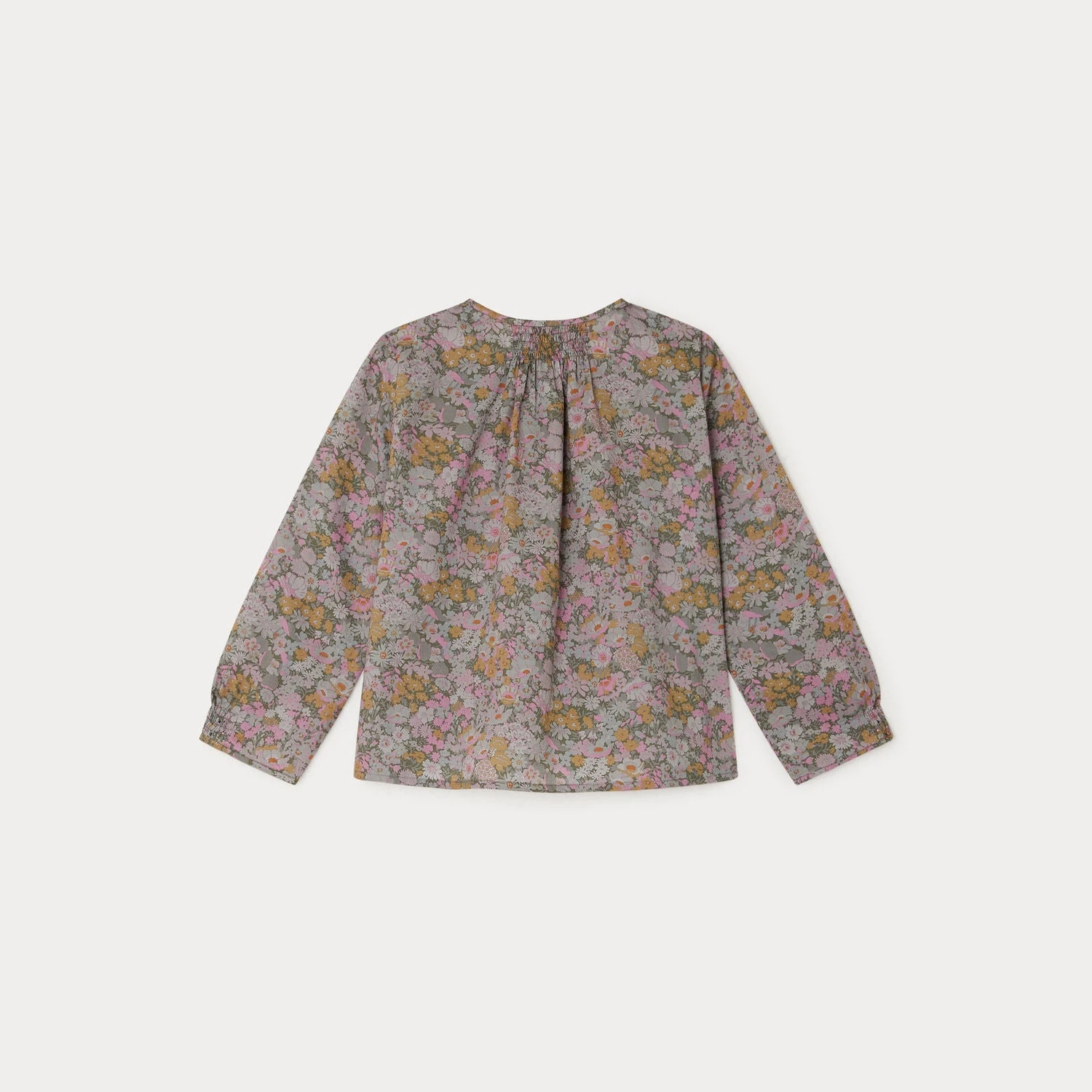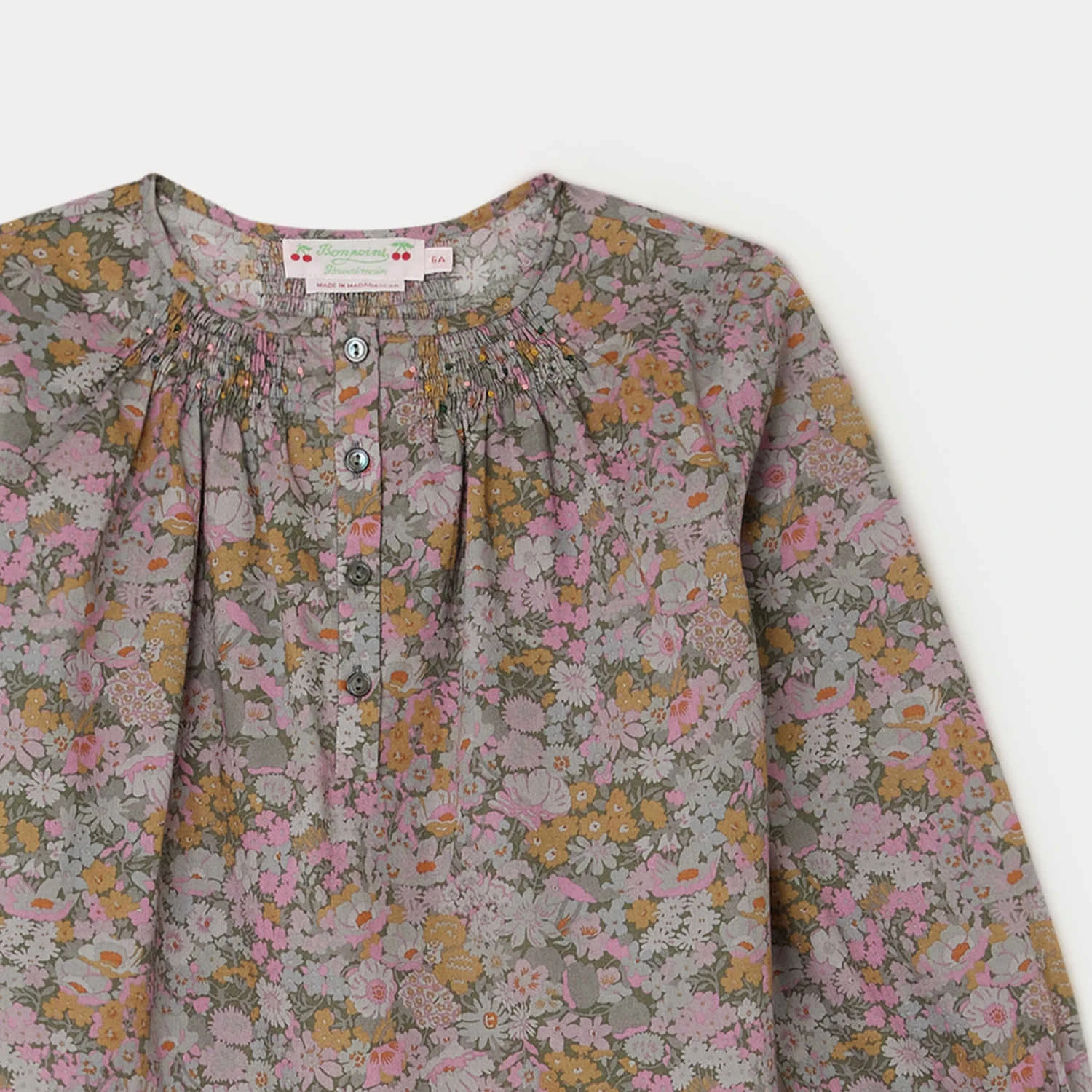 La blouse Biancarosa met de la tendresse dans la tenue des filles avec son tissu Liberty exclusif au joli imprimé floral. Les fronces sous le col sont assorties de broderies réalisées à la main.