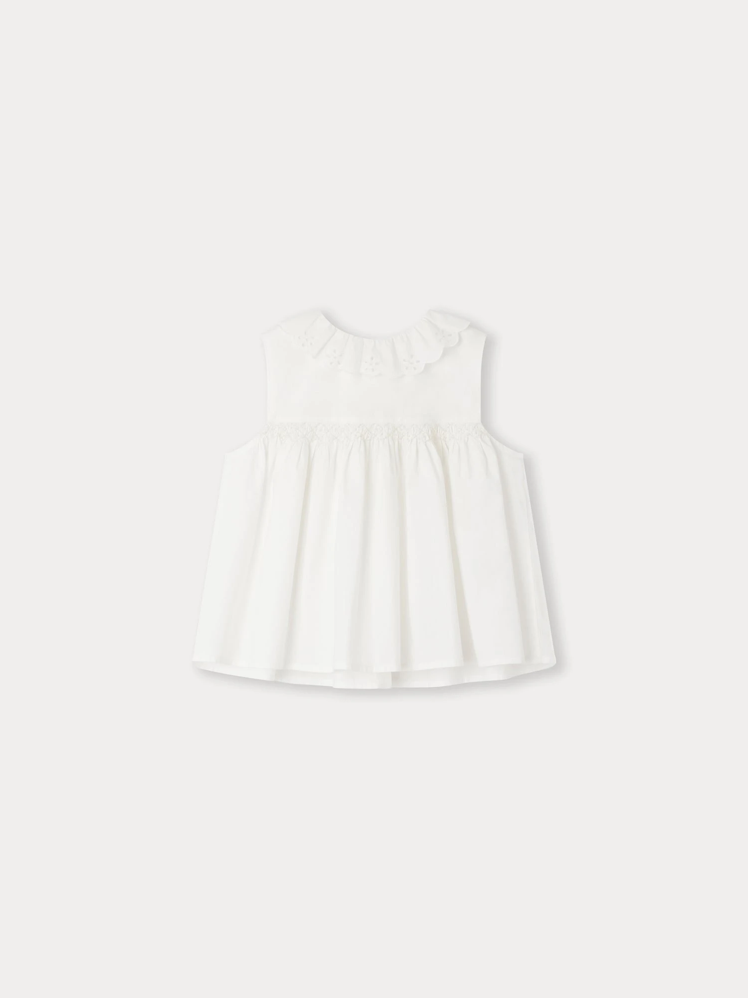 La blouse Faye pour fille a une coupe fluide grâce à la popeline de coton, assurant un joli mouvement. Elle est agrémentée de broderies délicates sous le buste et se ferme par des boutons sur le devant.