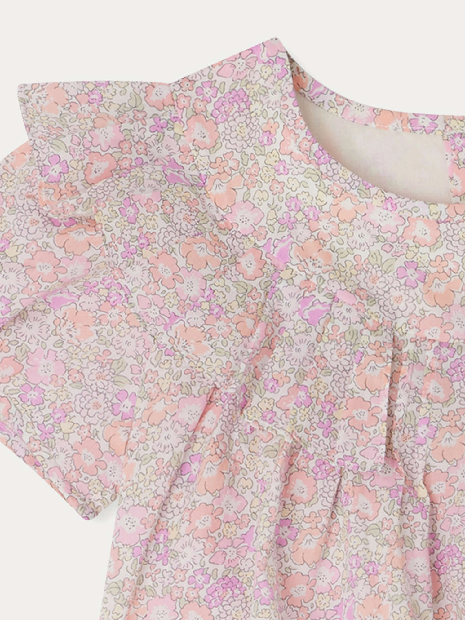 La blouse Fosca pour fille sait se faire remarquer avec son tissu Liberty à l’imprimé floral iconique. Son grand volant autour de l’encolure se distingue par son jeu de plis.