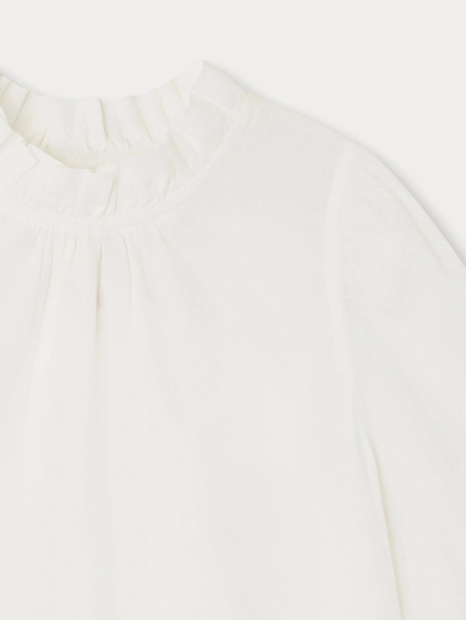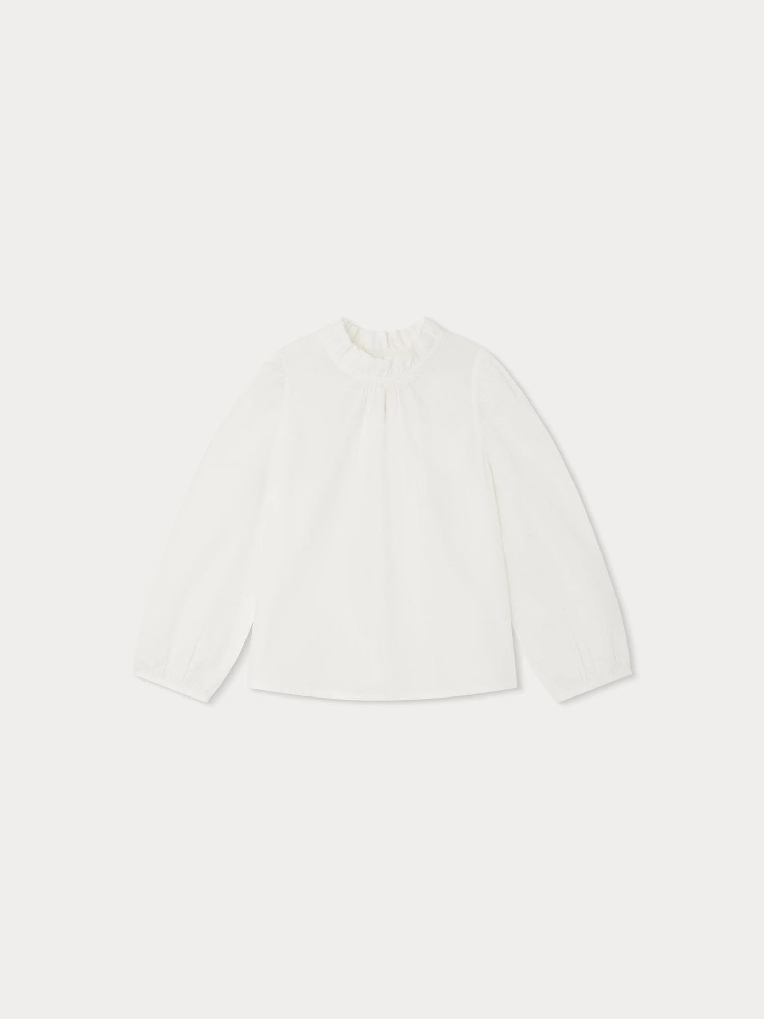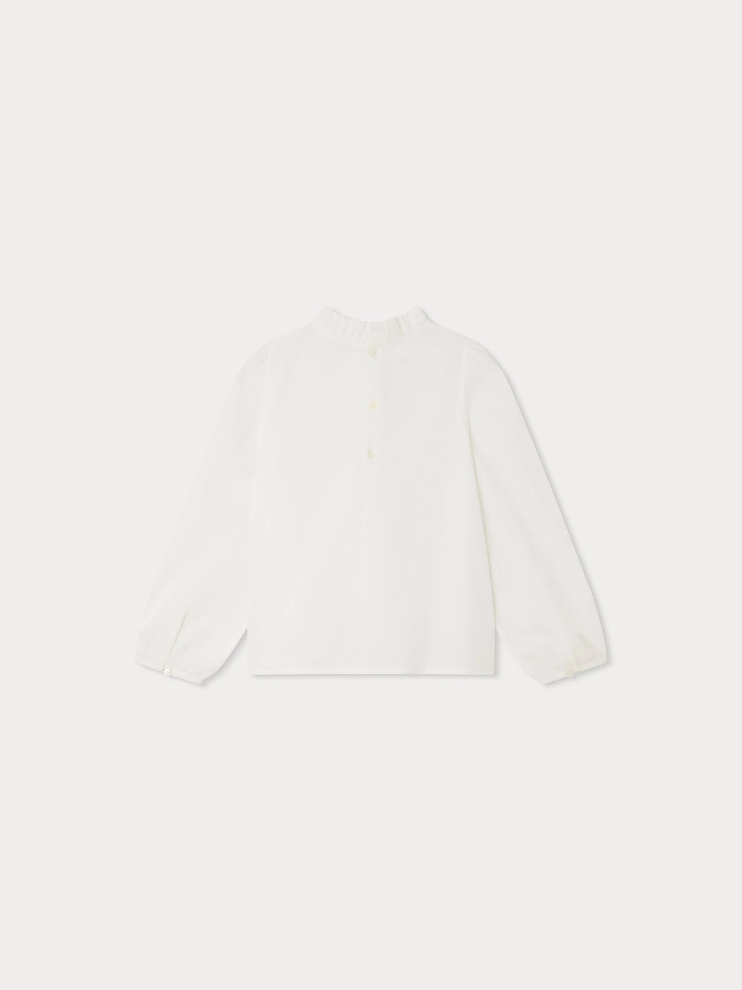 En coton biologique doux, cette blouse unie Tallulah pour fille se distingue par son col plissé, ses fronces sous le col et ses manches bouffantes resserrées aux poignets. Elle se boutonne au dos.