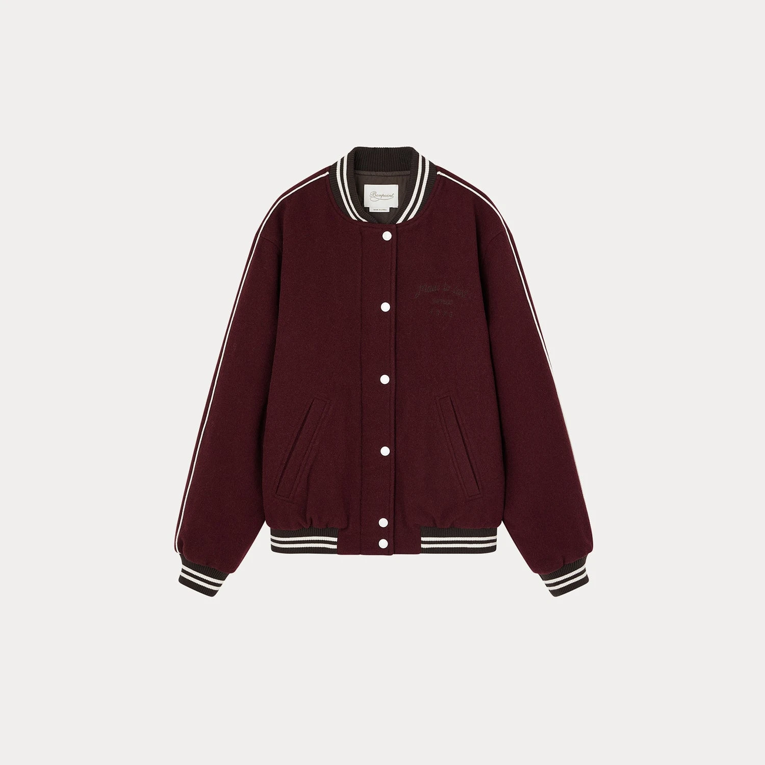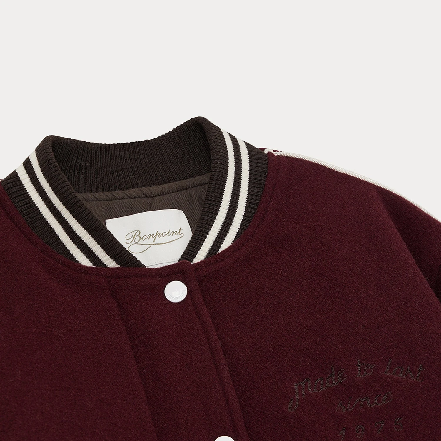 Ce blouson Brooklyn pour femme en drap de laine, s’orne d’une broderie avant et d’un écusson au dos.