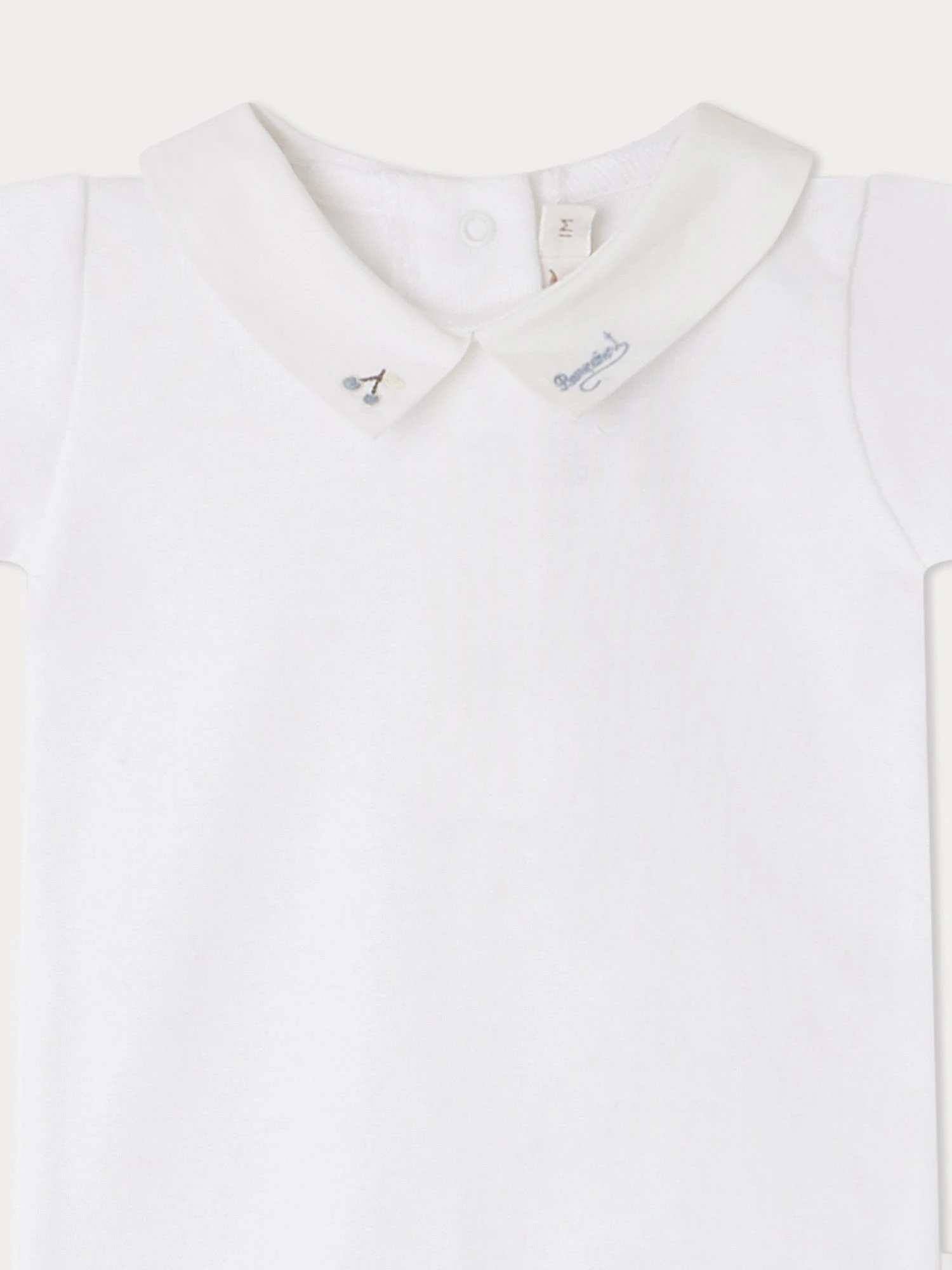 Ce body pour bébé Juillet est très élégant avec son petit col brodé et ses finitions à picots. Il est confectionné en coton issu de l’agriculture biologique.