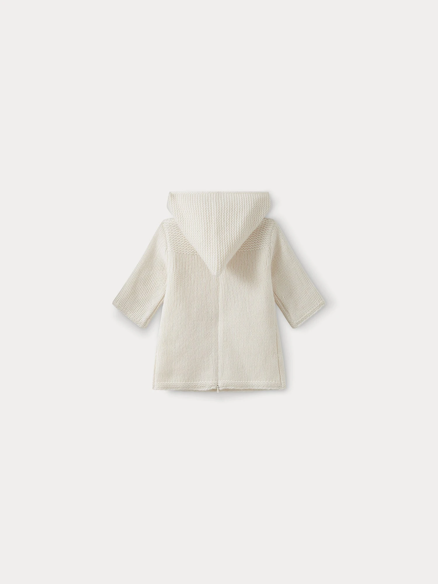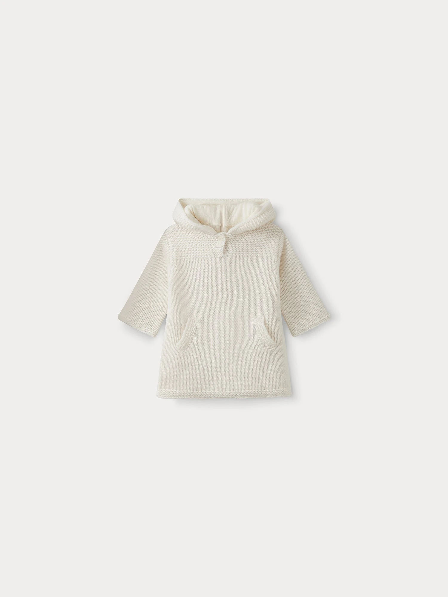 Ce burnous à poche kangourou rajoutera élégance et confort à toutes les tenues de bébé. Il associe point mousse et point jersey pour l’originalité.