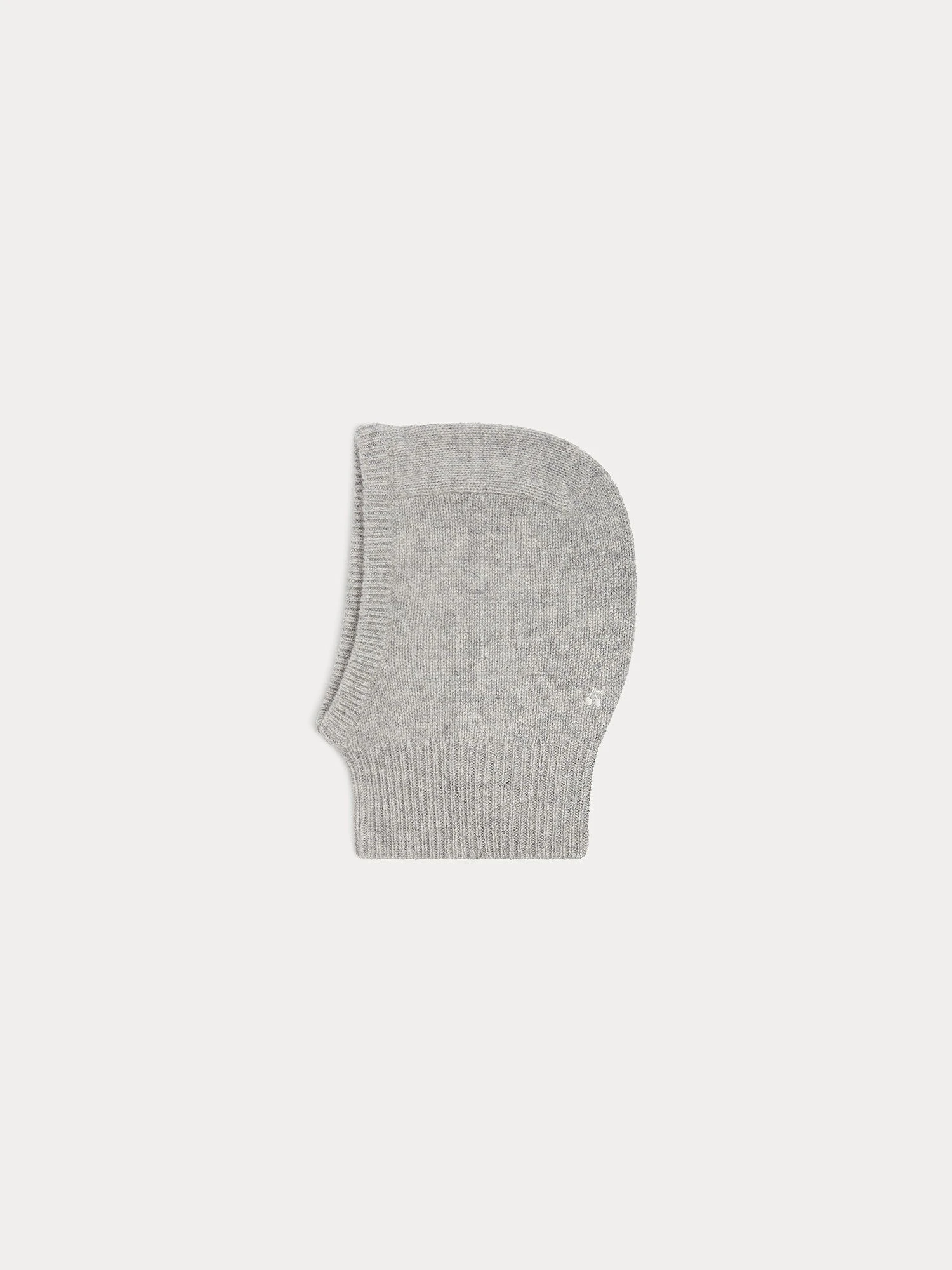 Avec cette cagoule gris chiné clair, les années 90 font un retour remarqué dans les dressings. Enveloppant toute la tête et le cou, cet accessoire en cachemire tient bébé au chaud pendant les balades au parc.