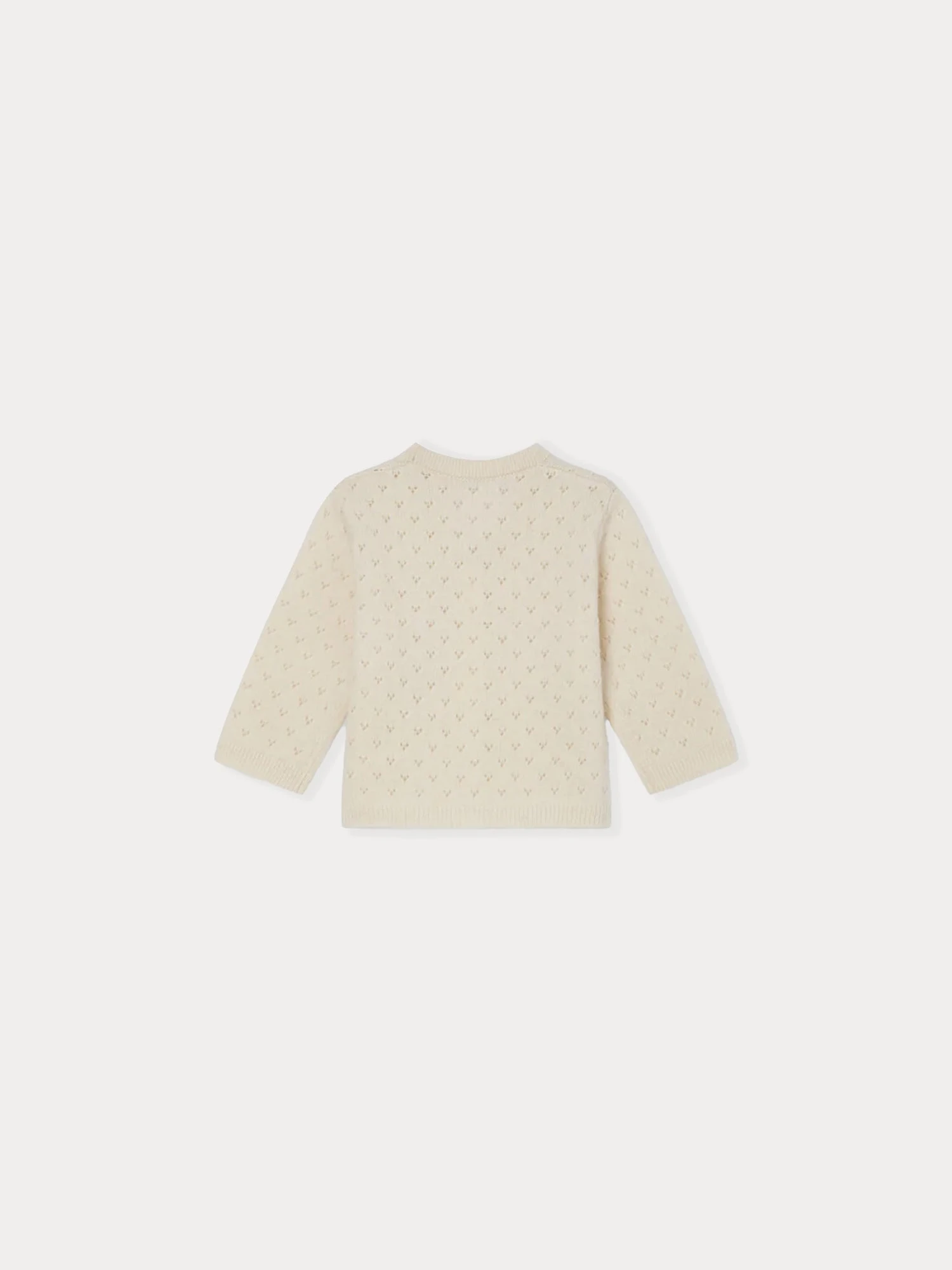 Le cardigan Azia pour bébé se démarque par son subtil motif ajouré sur l’ensemble de la maille. Ce modèle uni se décline dans une coupe droite.