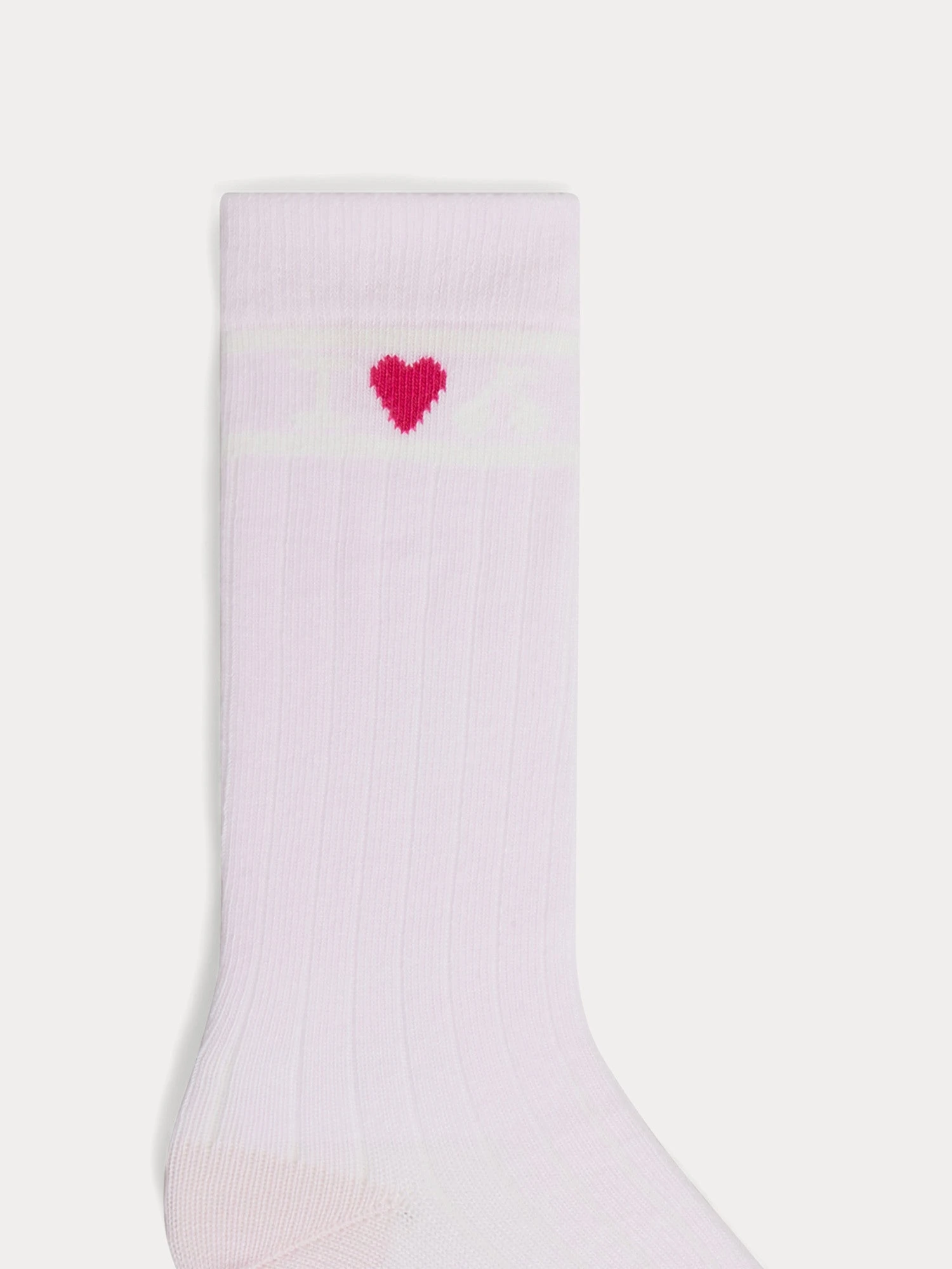 Les chaussettes Filo sauront ravir les filles avec leur teinte douce pleine de charme. La tige à larges côtes est soulignée en haut d’un message emblématique en jacquard.