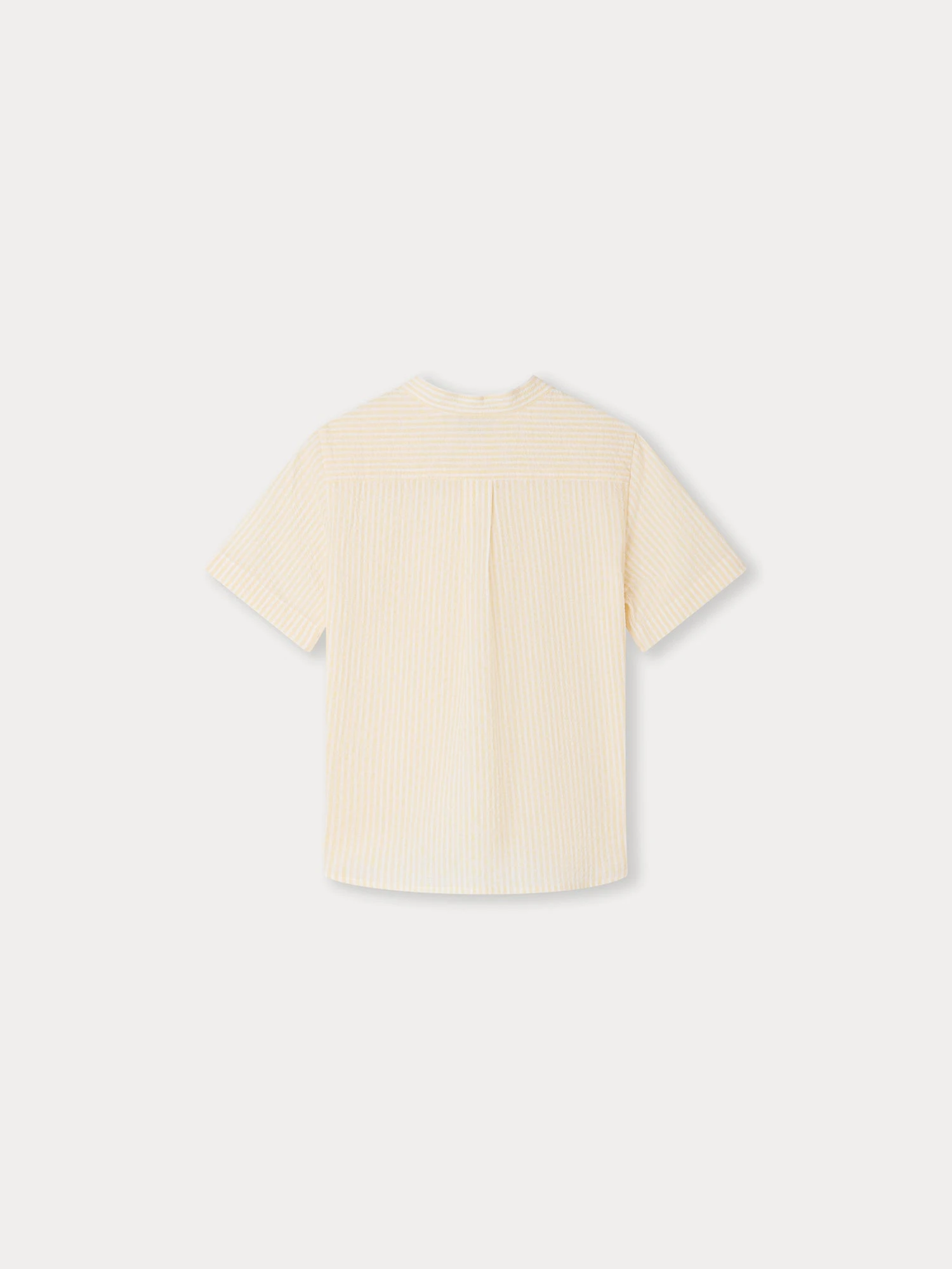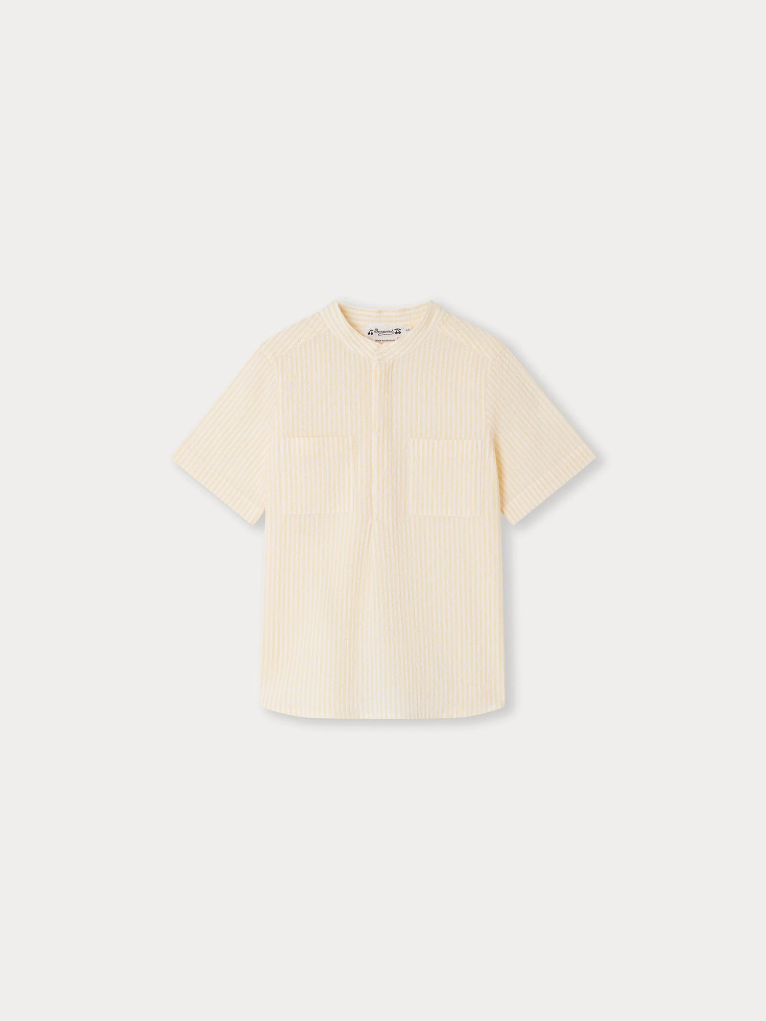 Cette chemise à manches courtes pour garçon Cillian est très élégante avec son col officier et son semi boutonnage invisible. Elle comporte deux poches plaquées sur le devant.