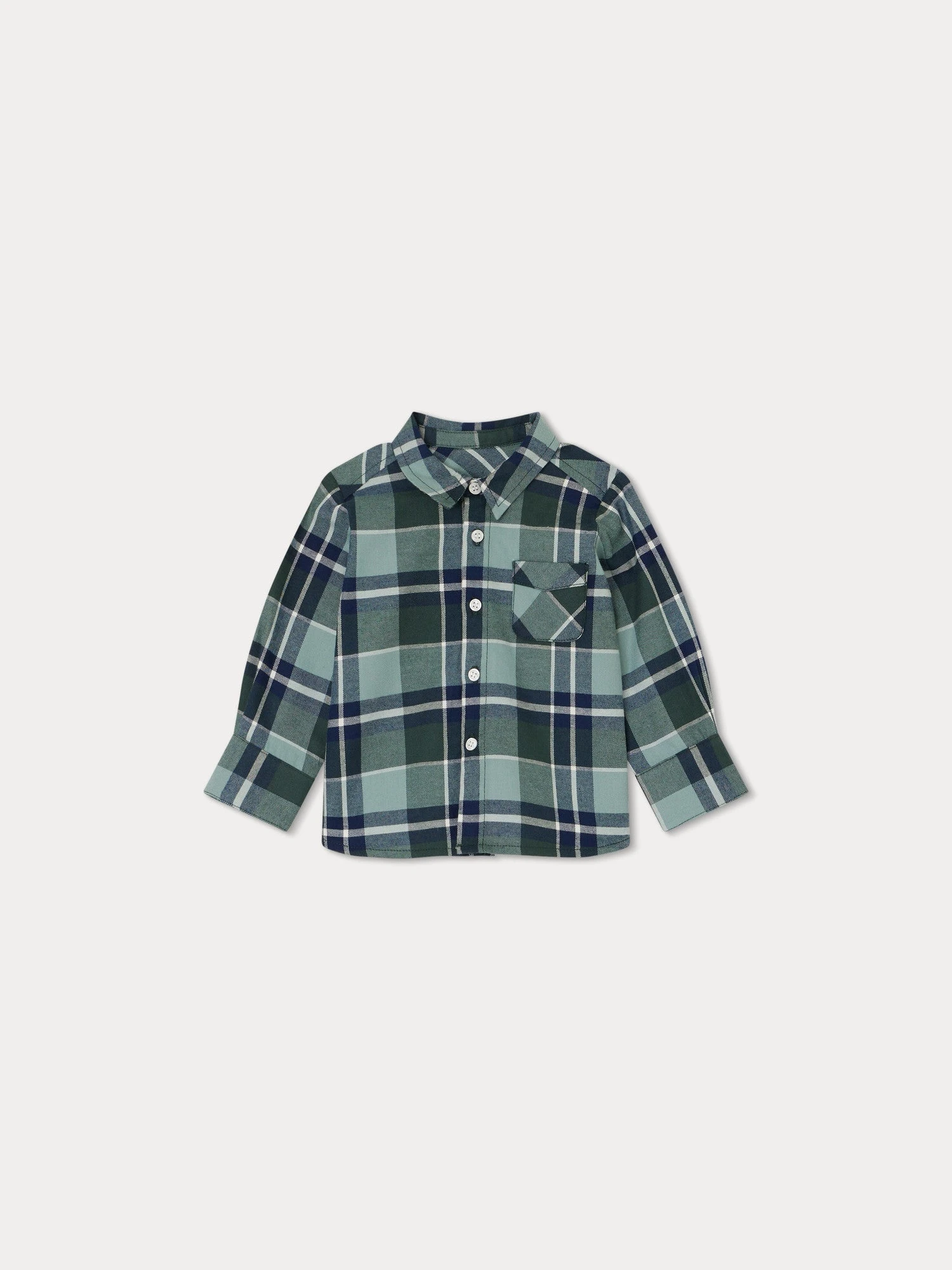En coton doux, cette chemise à manches longues Malo pour bébé se décline dans un imprimé à carreaux tendance. Une poche poitrine en biais finalise ce modèle incontournable de la Maison.