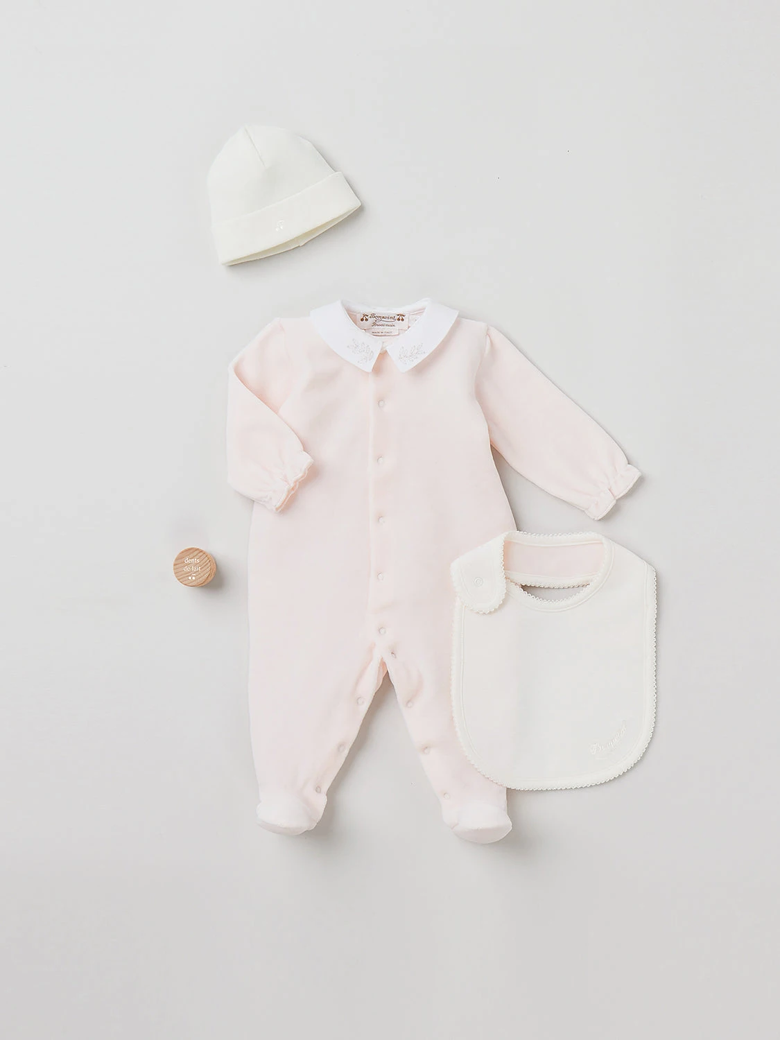 - Broderie cerise sur le bonnet uni