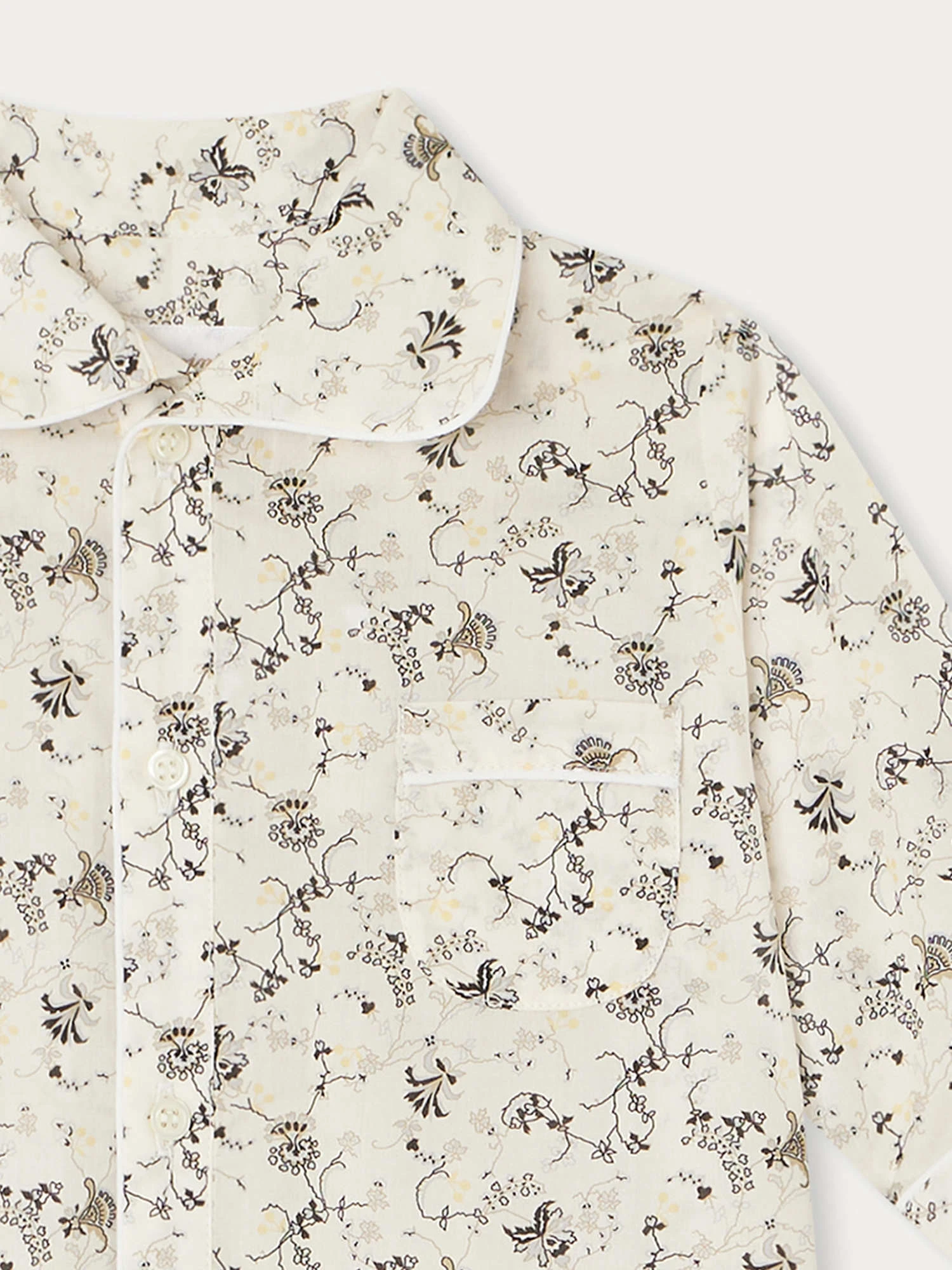 Cette combinaison pour bébé Reve est confectionnée dans un tissu Liberty original. Elle se dote de finitions raffinées, à l’instar de son col chemise et de ses passepoils.