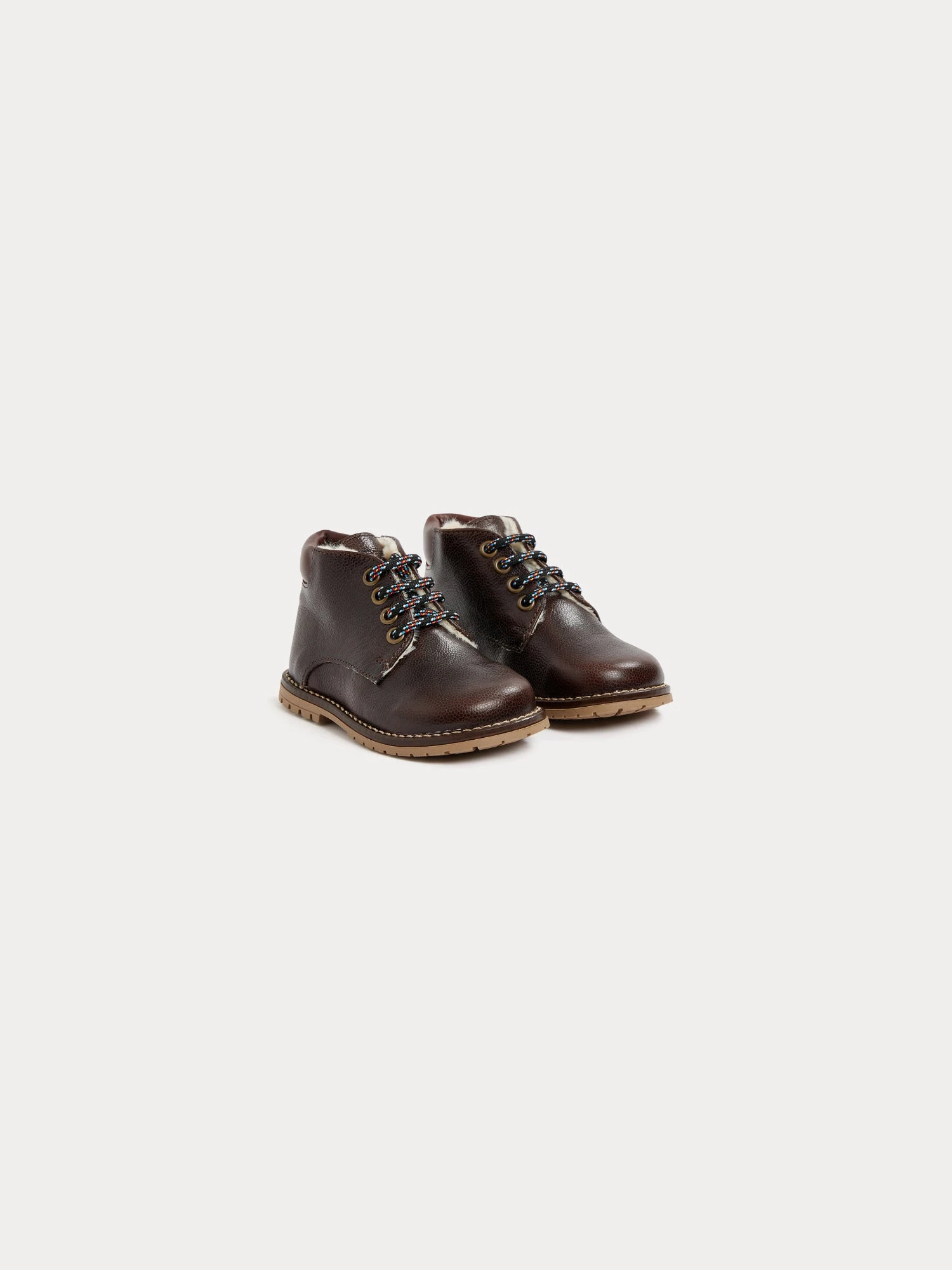 Fermées par des lacets, ces derbies premier pas Diego pour bébé sont fourrées pour plus de confort et de chaleur. Le contrefort s’orne de la signature Bonpoint en relief.