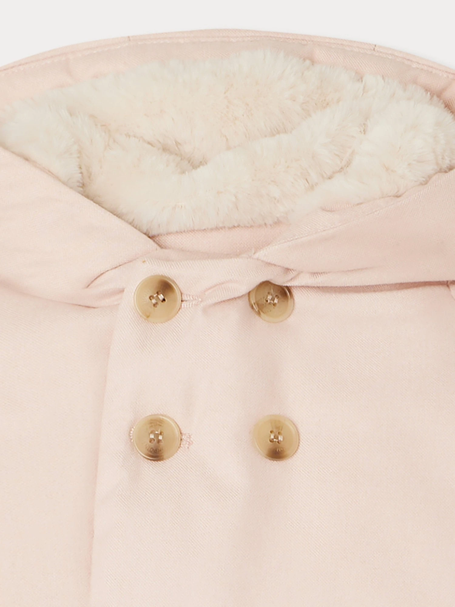 La doudoune Tisha protège Bébé du froid grâce à sa capuche fourrée et à son garnissage en plumes. Un écusson signe la manche gauche de ce modèle au double boutonnage avant.