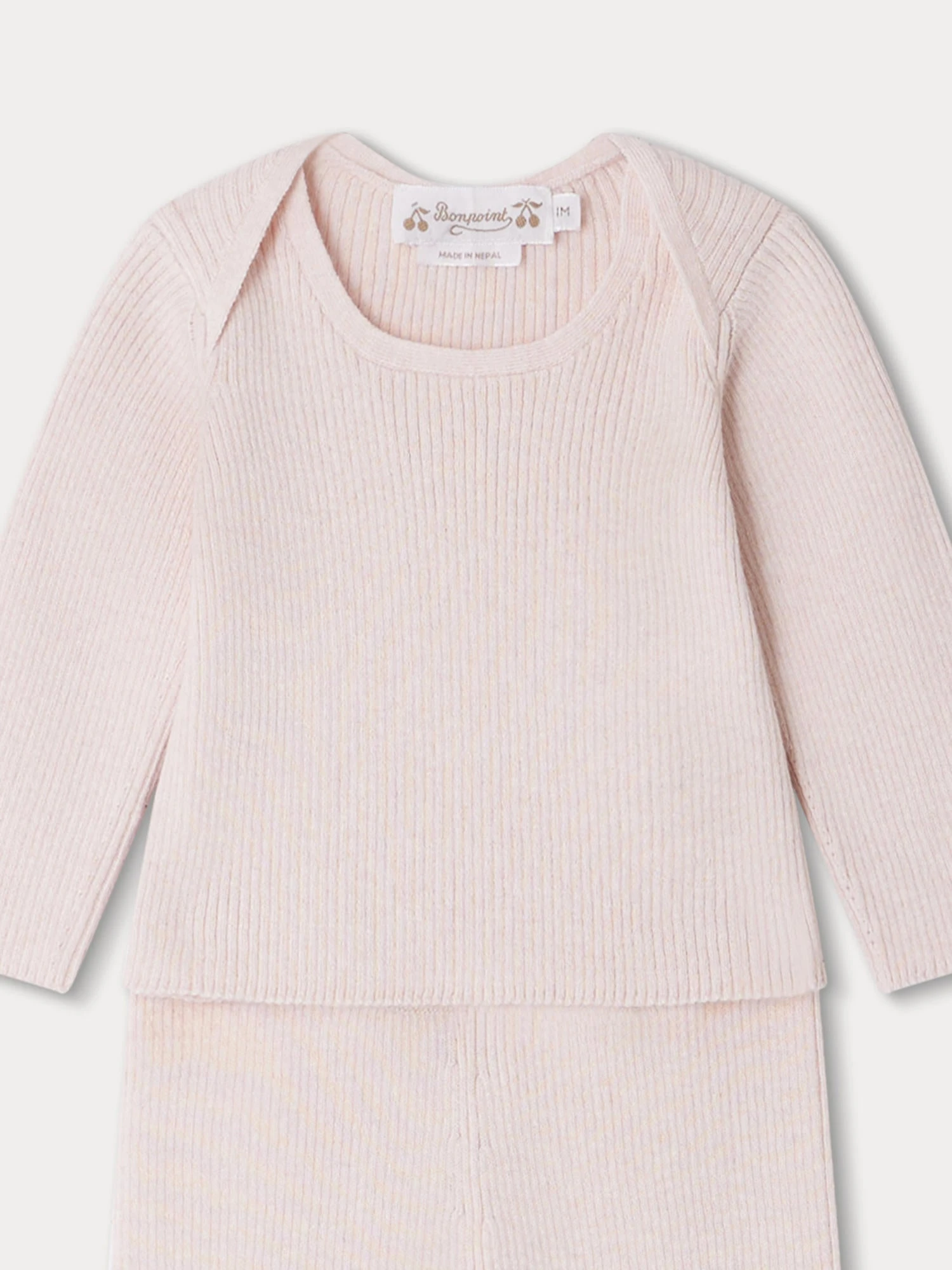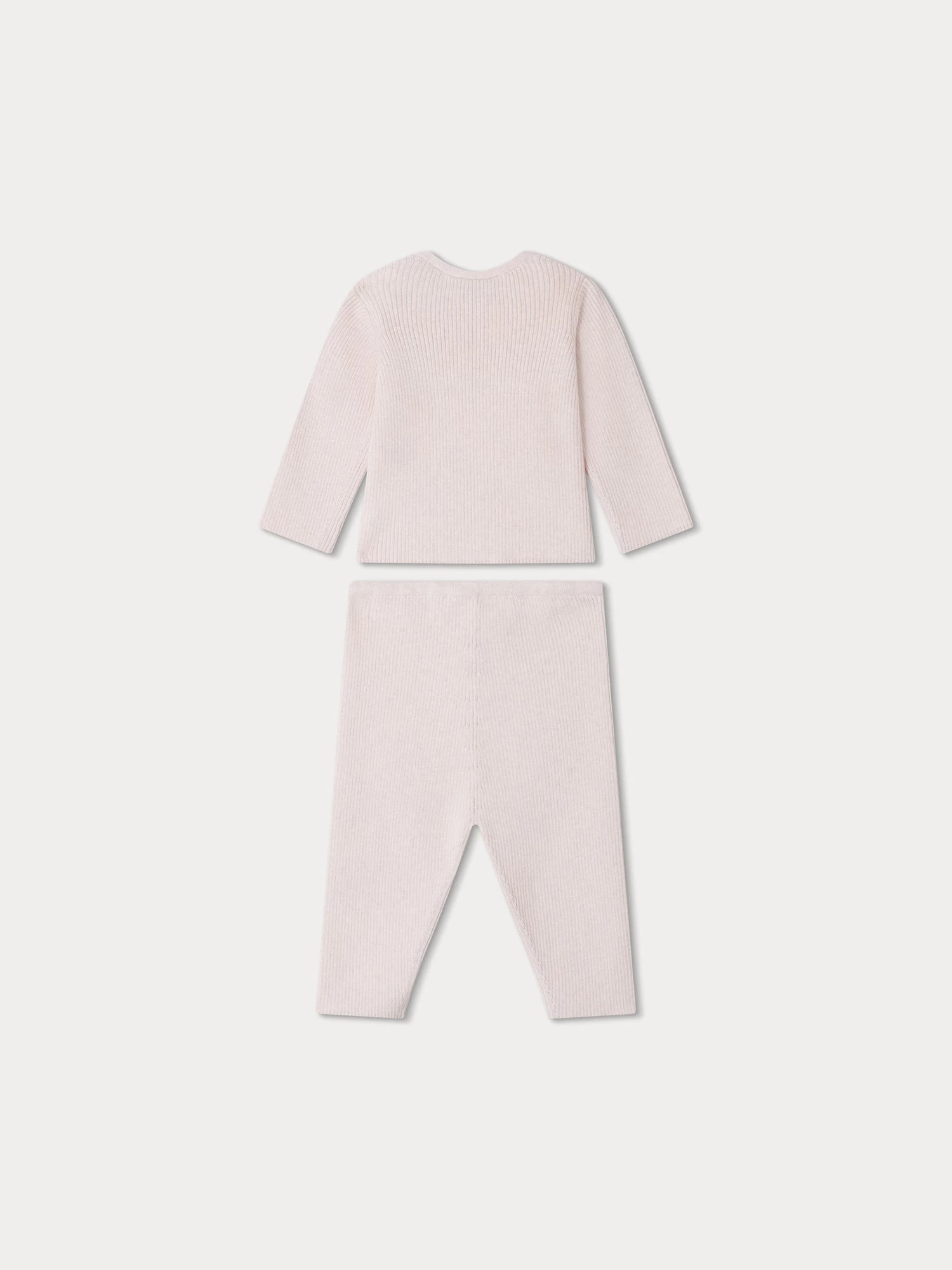 Rassemblant un haut à manches longues et un pantalon assorti, l’ensemble Fili pour bébé convient dès la naissance. Ce modèle en coton biologique avec une touche de cachemire est ultra doux sur la peau.