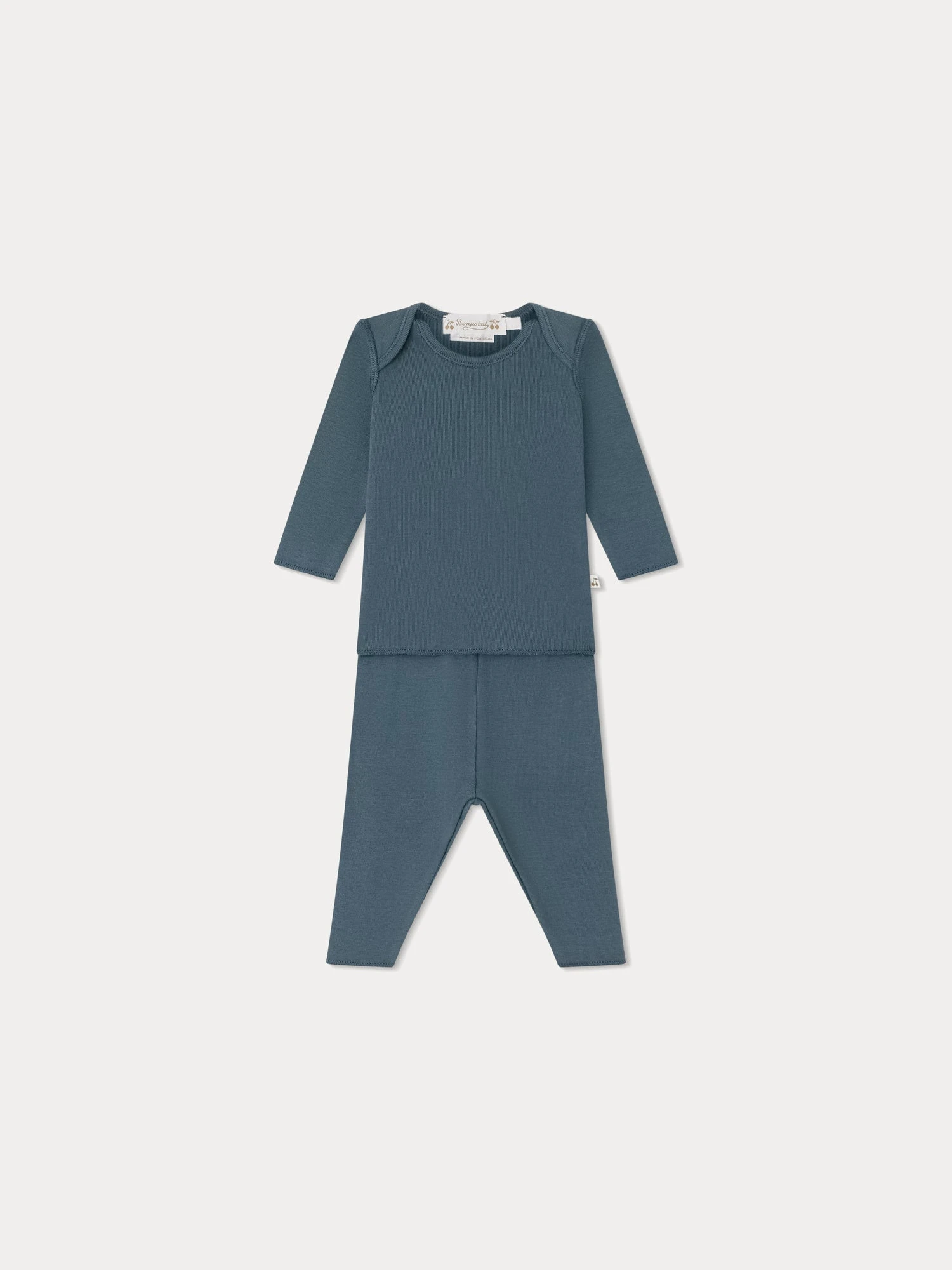 Avec ses emmanchures américaines originales, l’ensemble Timi pour bébé est un essentiel de la Maison. Ce modèle est réalisé en coton issu de l’agriculture biologique agrémenté de fines côtes.