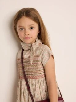 Incontournable de la Maison, le foulard Cayati accessoirise la tenue des filles année après année. Son tissu Liberty iconique se décore d’adorables fleurs aux tons tendres.