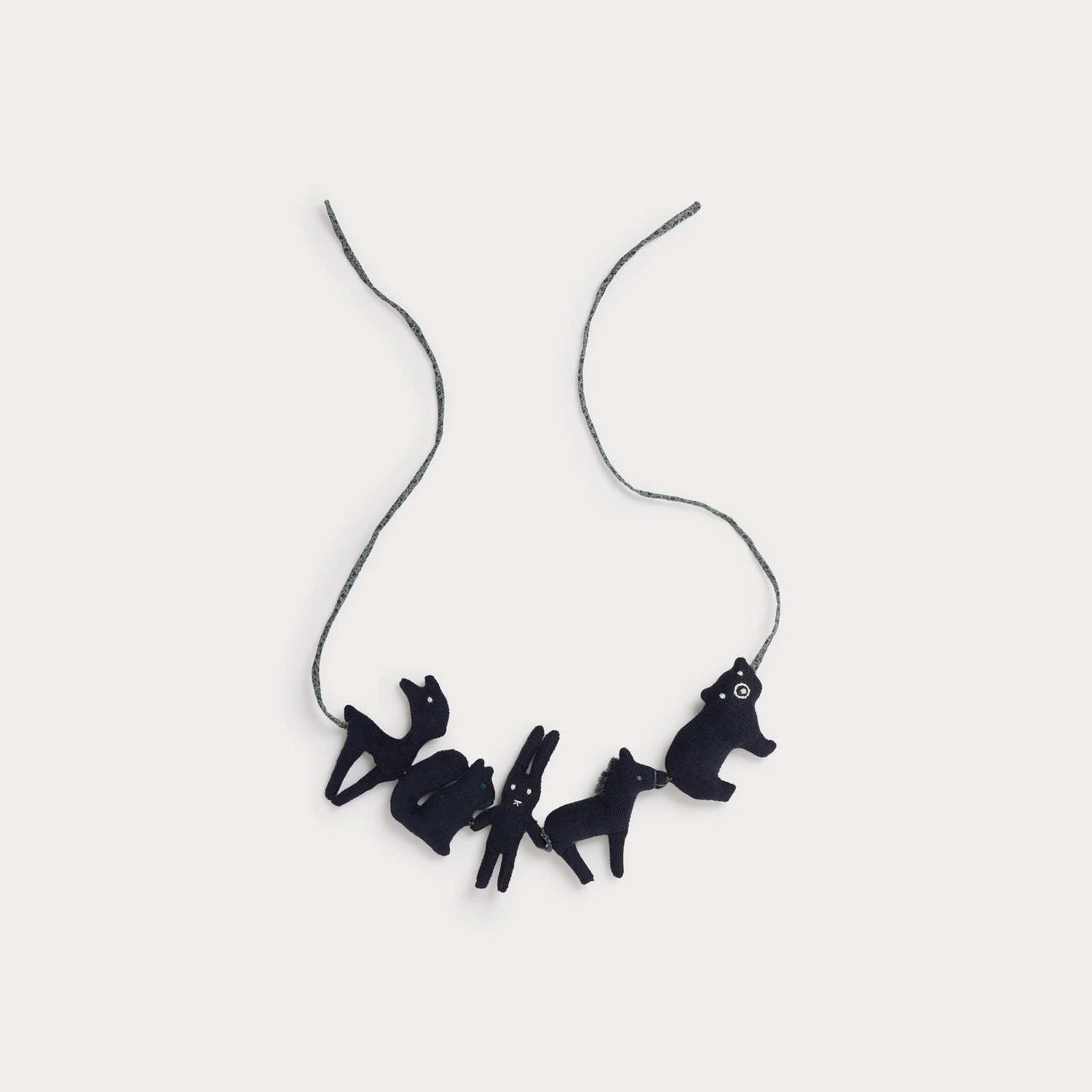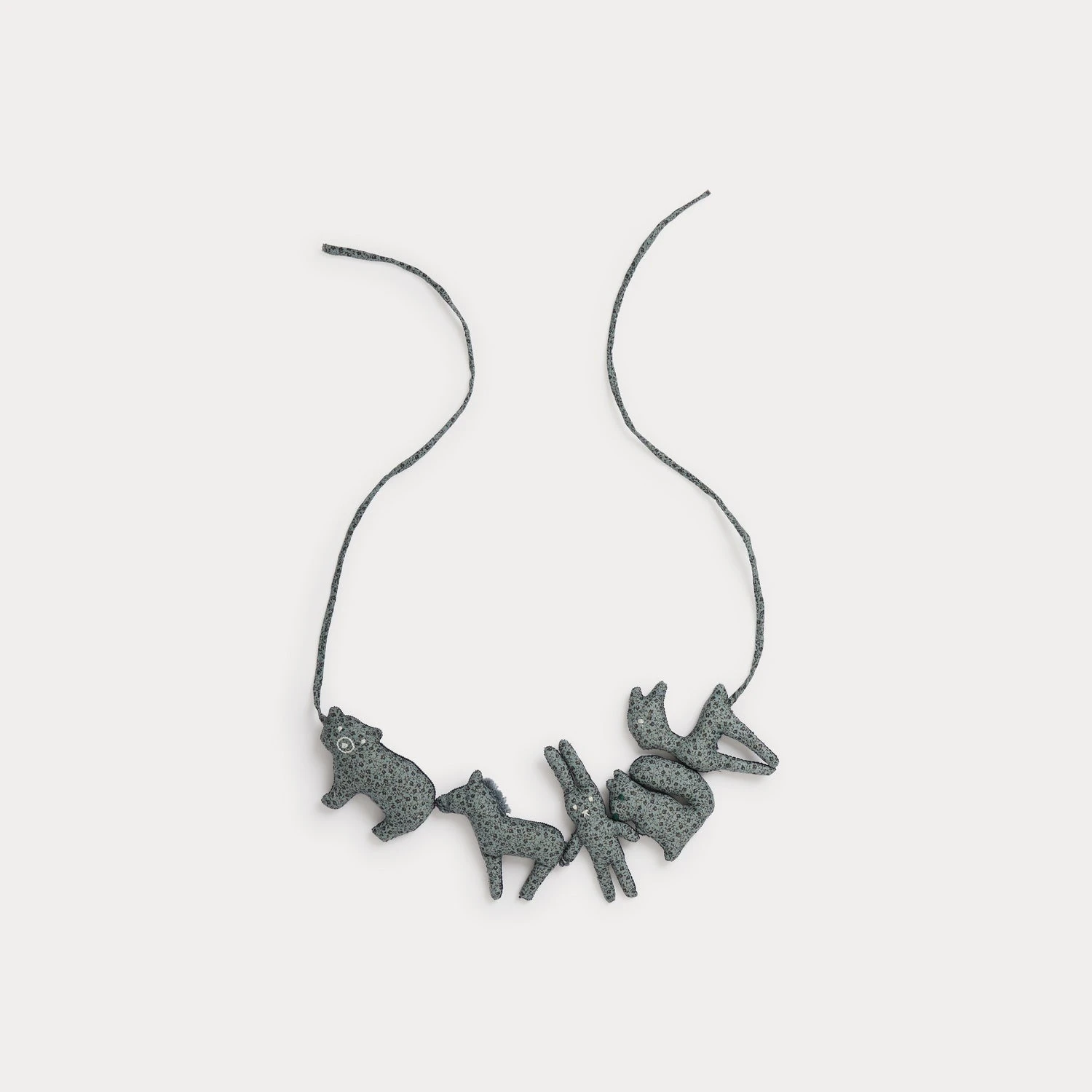 Cette guirlande décorative Badice s’orne de cinq sujets animaliers rembourrés aux finitions brodées. Habillée d’un tissu Liberty exclusif, elle est réversible.
