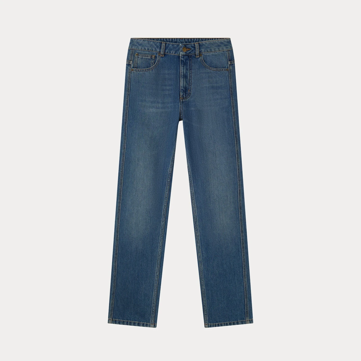 Le jean Abbesses pour femme peut traverser les époques avec élégance grâce à sa coupe droite intemporelle. Un effet de délavage subtil devant souligne son caractère unique.