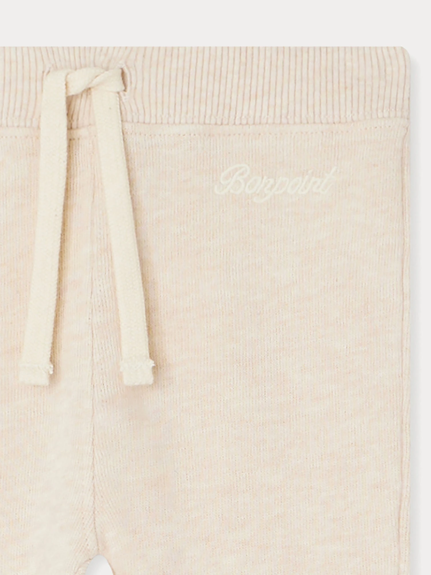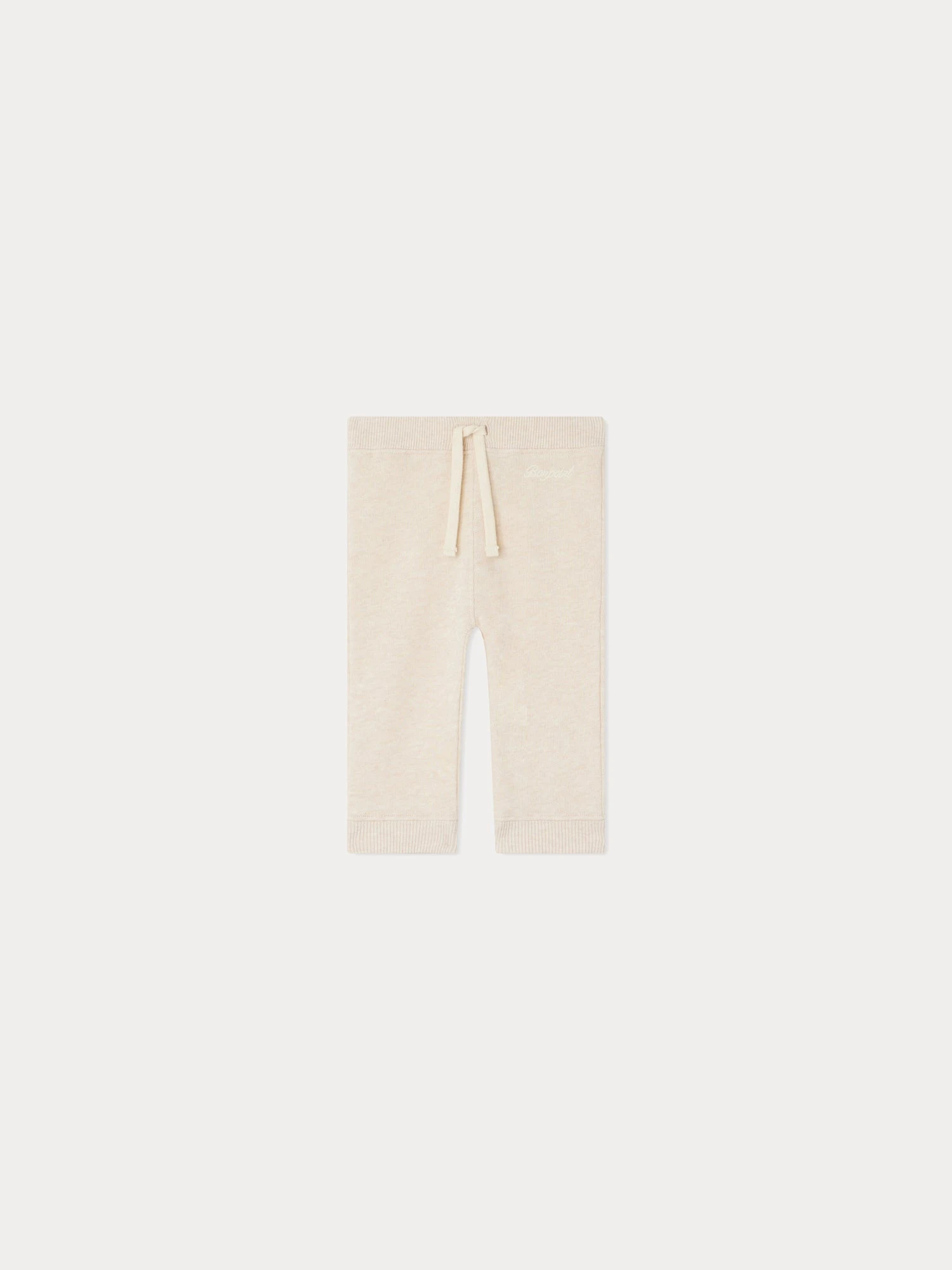 Le jogging Bambo pour bébé est tout en molleton, une matière aussi tendance qu’agréable à porter. La signature de la Maison s’invite sous la taille de ce modèle droit.