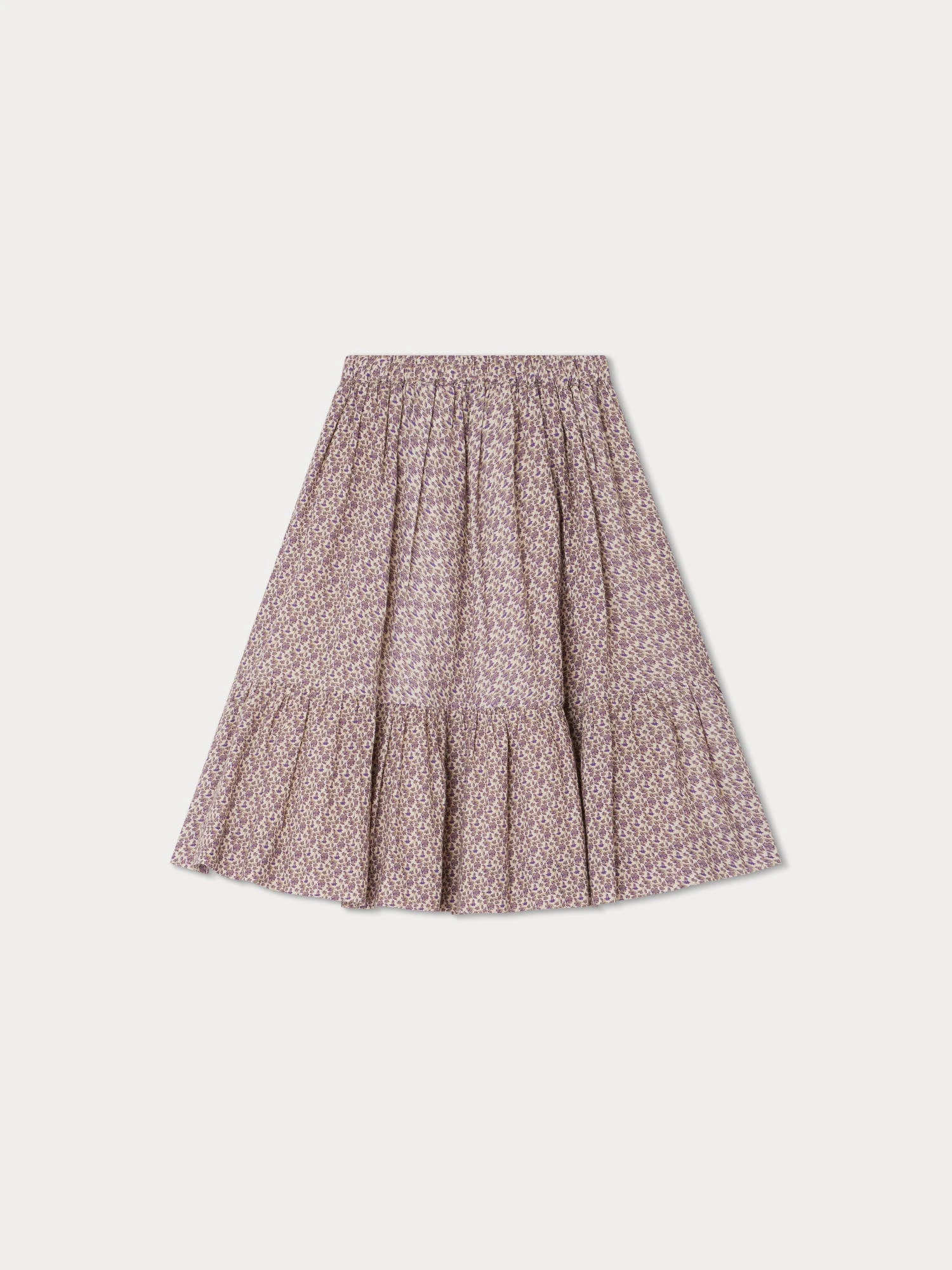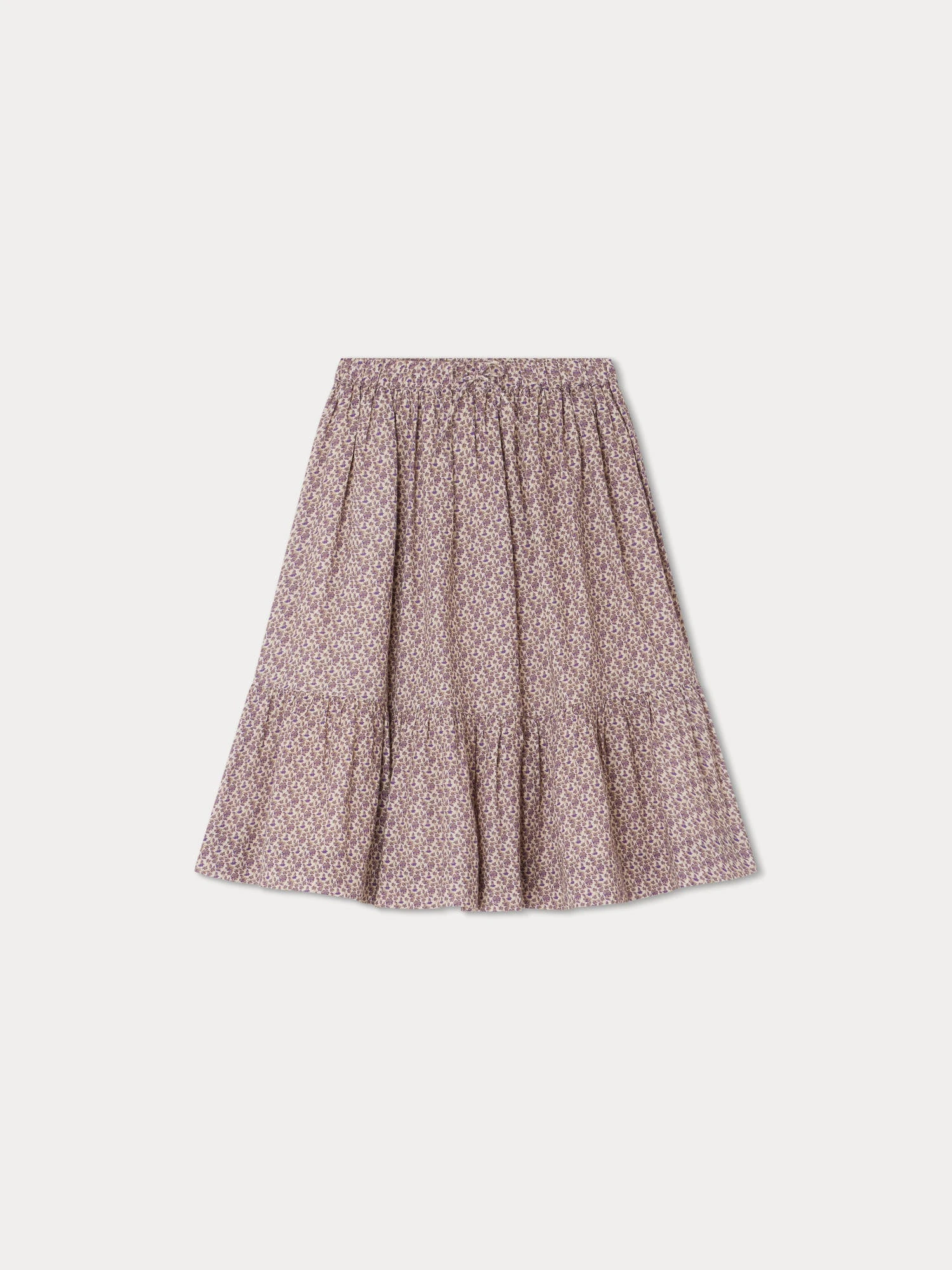 Cette jupe pour fille Daisy séduit les filles avec son motif à petites fleurs et son large volant à la base. Elle se présente dans une coupe évasée mi-longue.