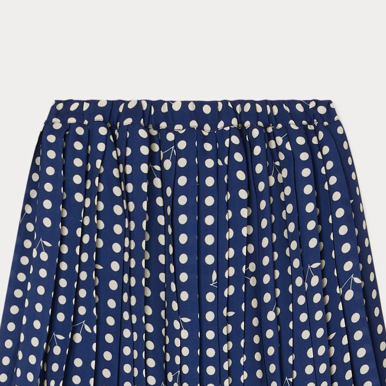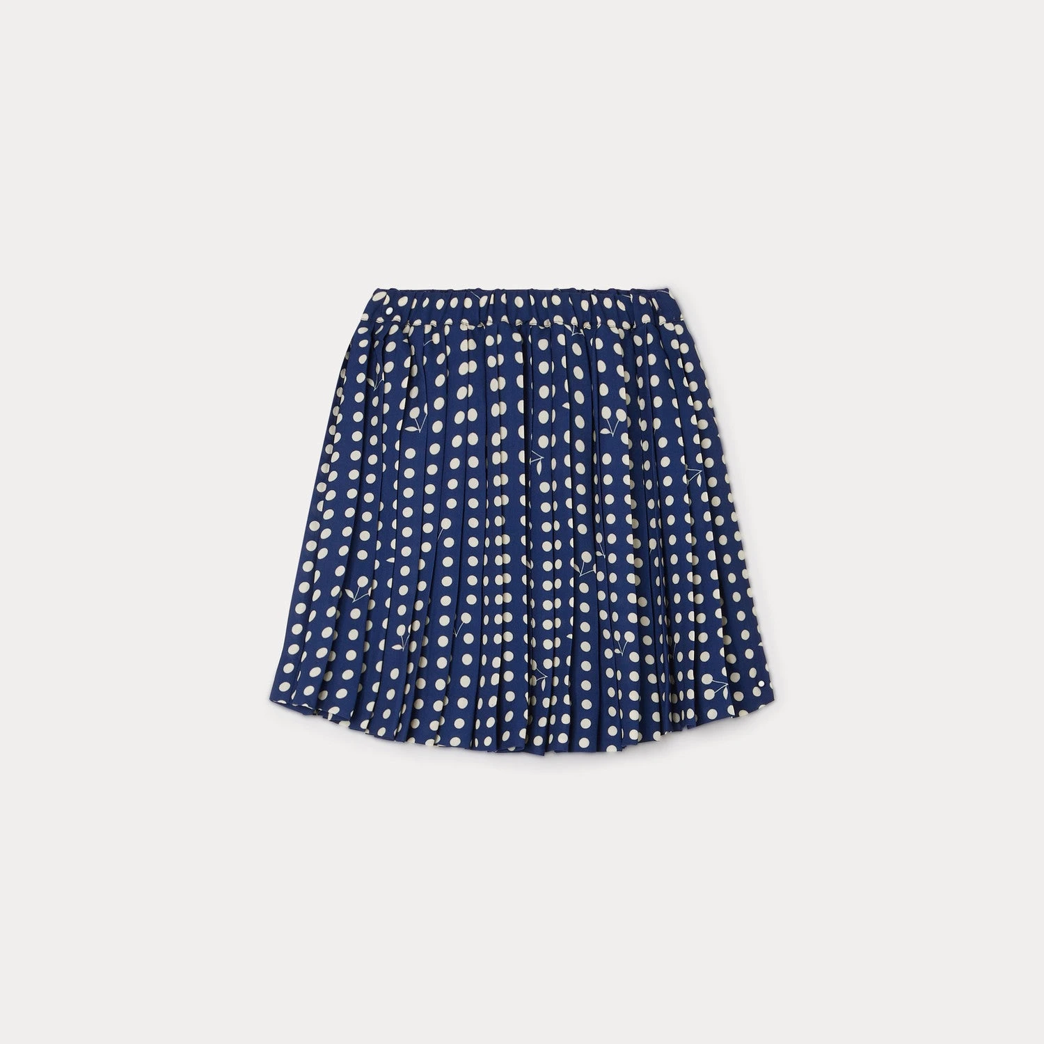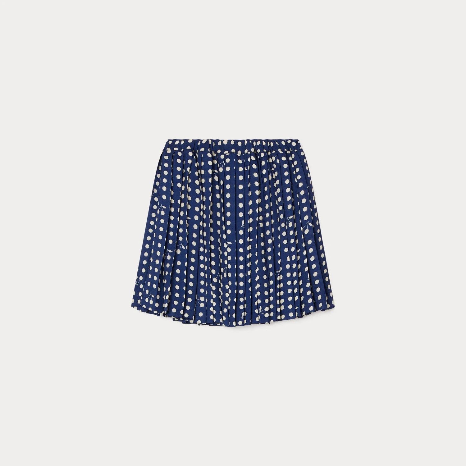 Des cerises emblématiques se mêlent avec subtilité à l’élégant imprimé pois de la jupe Jais pour fille. Ce modèle court plissé confère mouvement, légèreté et fluidité aux tenues du quotidien.