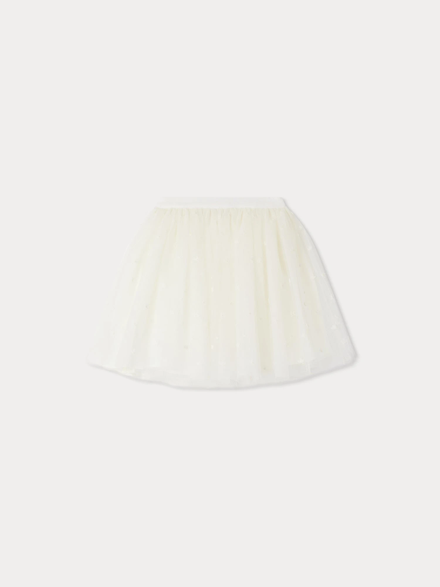 La jupe Pois pour fille est parfaite pour une cérémonie, avec ses couches de tulle superposées et ses broderies ton sur ton sur le dessus. Elle s’enfile aisément grâce à son élastique gros grain à la ceinture.