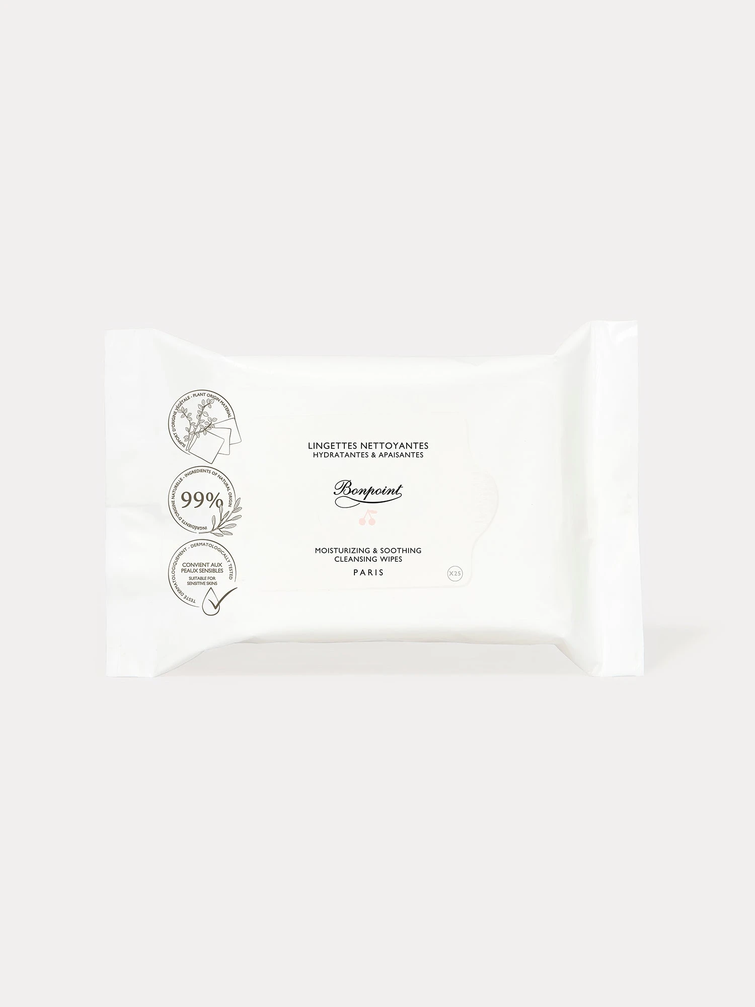 - Format nomade : 25 lingettes x 4 paquets accompagnés d’un étui à lingettes offert