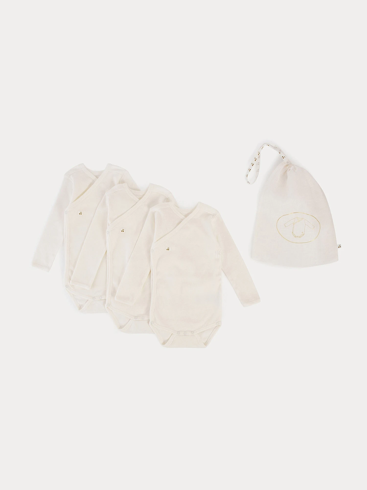 Rien de tel que ces bodys cache-cœurs pour maintenir votre bébé au chaud dès la naissance. Leur composition en coton biologique écru enveloppe la peau de douceur. On les porte avec un pantalon et des chaussons en crochet.