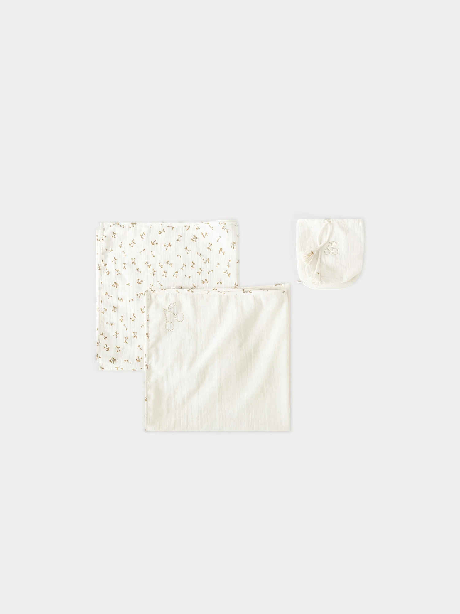 Ce lot de deux langes imprimés se révèlera vite indispensable pour le quotidien de bébé. L’envers uni est brodé de la cerise iconique.