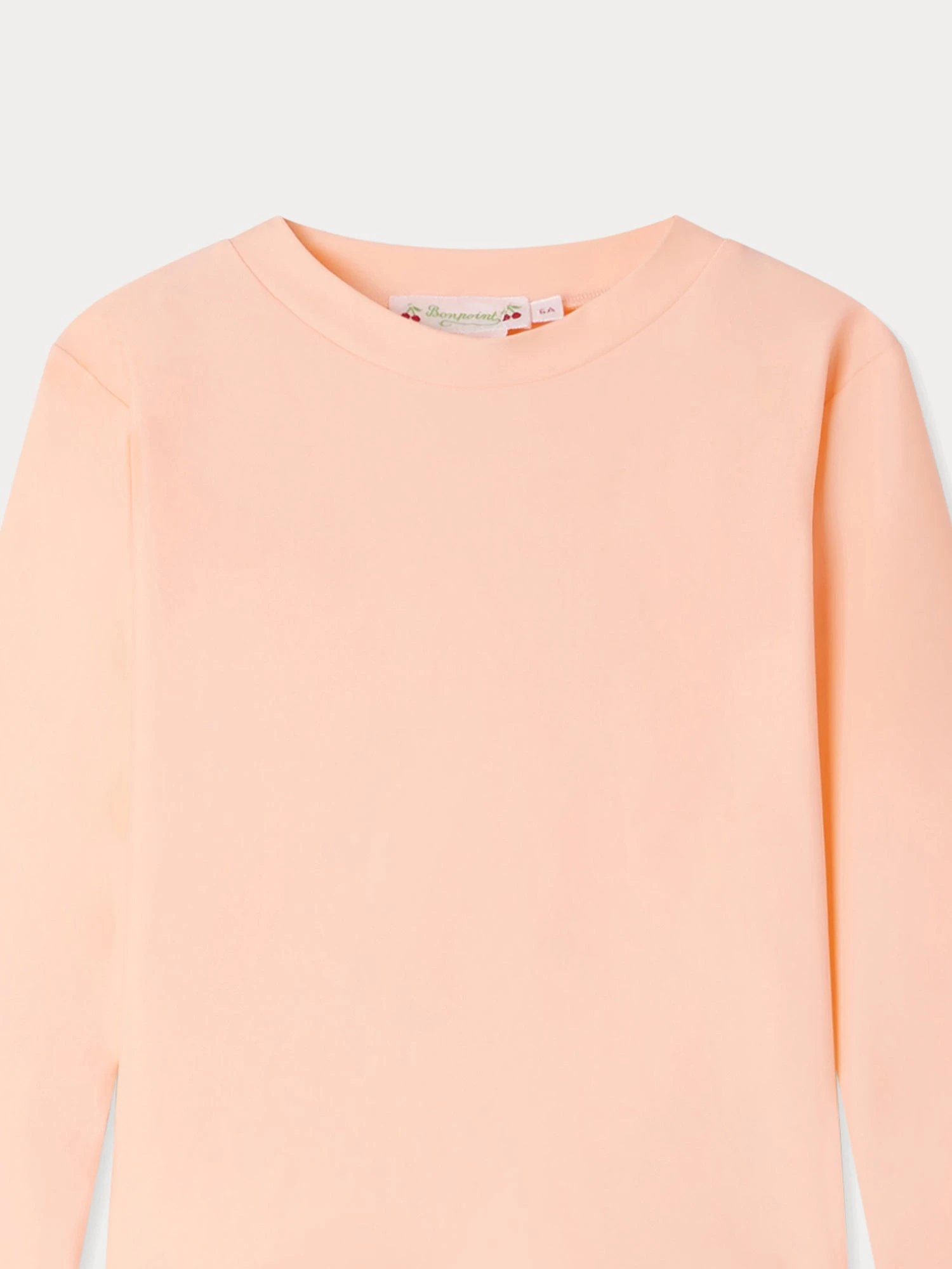 Ce maillot de bain 2 pièces Ainoa anti-UV pour fille se compose d’un t-shirt à col rond et manches longues, associé à une culotte volantée. L’emblématique cerise Bonpoint est sérigraphiée sur le haut.