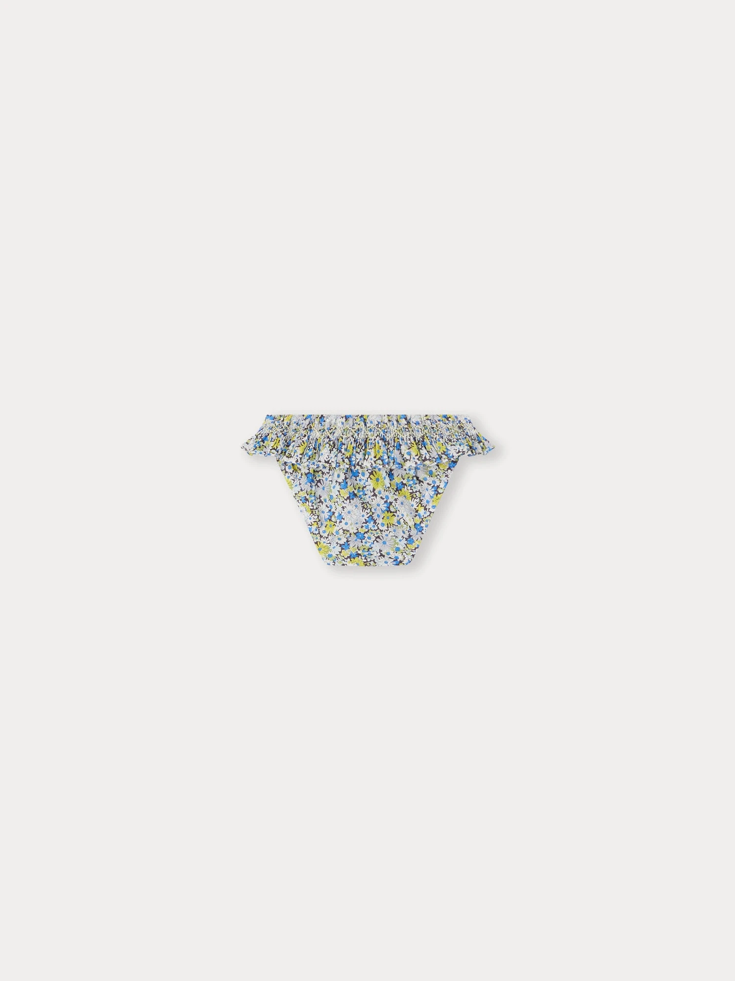 Avec son volant brodé et smocké à la main, ce maillot de bain Sardaigne pour bébé illustre le savoir-faire de la Maison Bonpoint. En tissu Liberty biologique, il est élastiqué à la taille et aux cuisses.