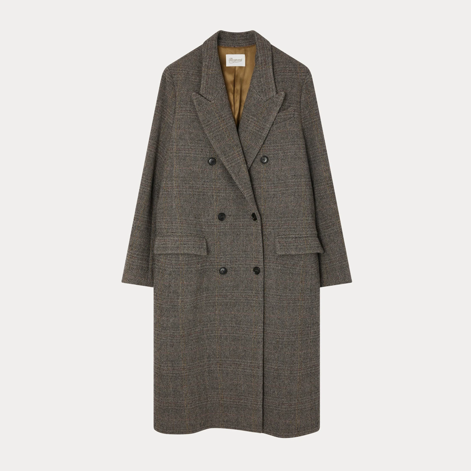 Le manteau Opéra pour femme se révèle aussi enveloppant que doux avec sa coupe droite longue. Une poche poitrine et deux poches devant agrémentent ce modèle à carreaux.