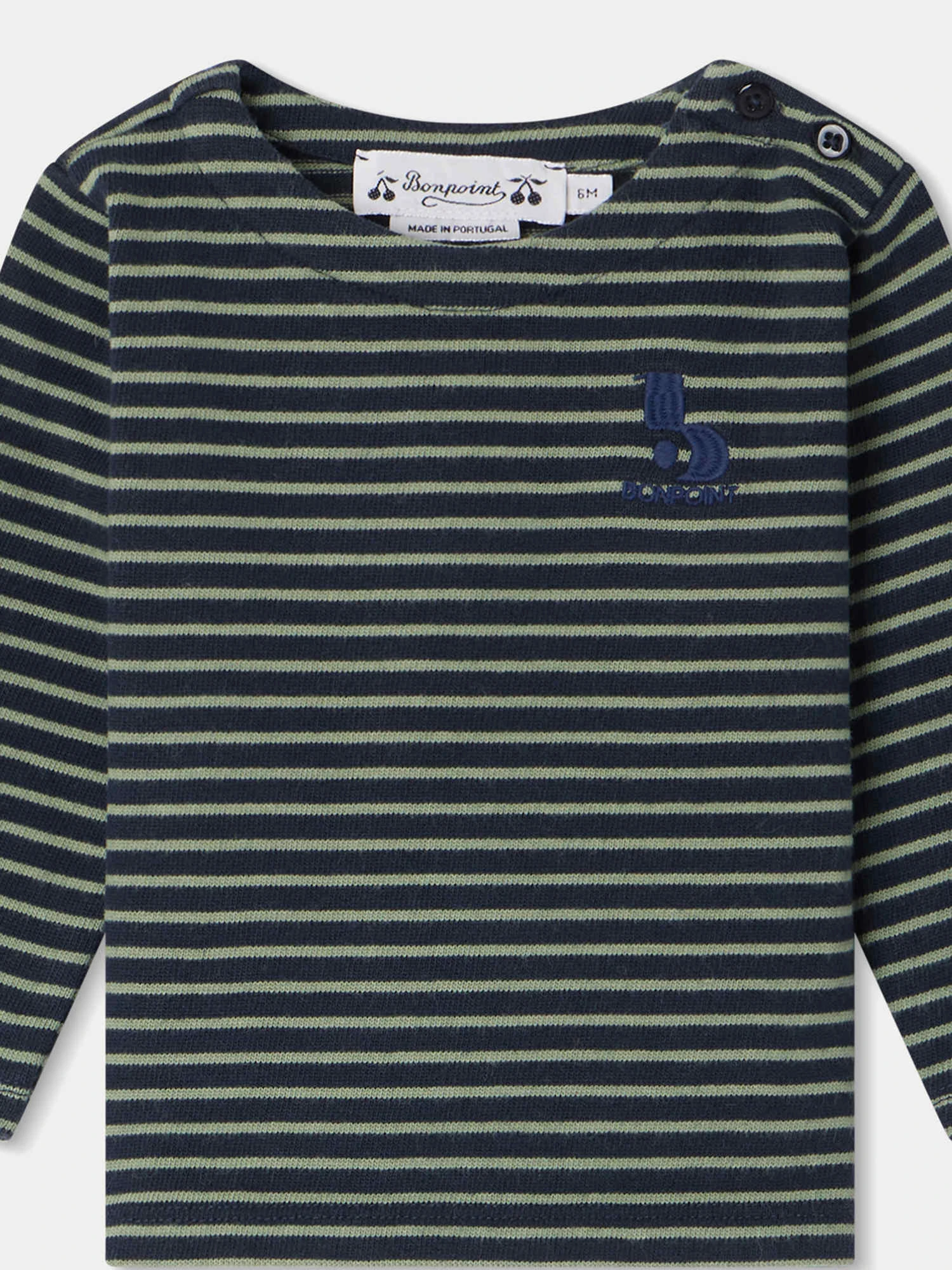 Confectionnée en coton biologique, cette marinière pour bébé Tourbillon fait partie des pièces incontournables pour allier style et confort. Elle est rehaussée d’une broderie Bonpoint sur la poitrine.