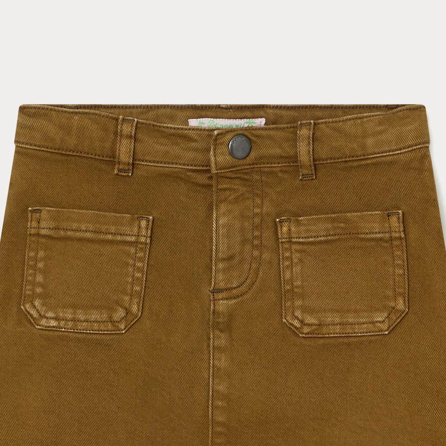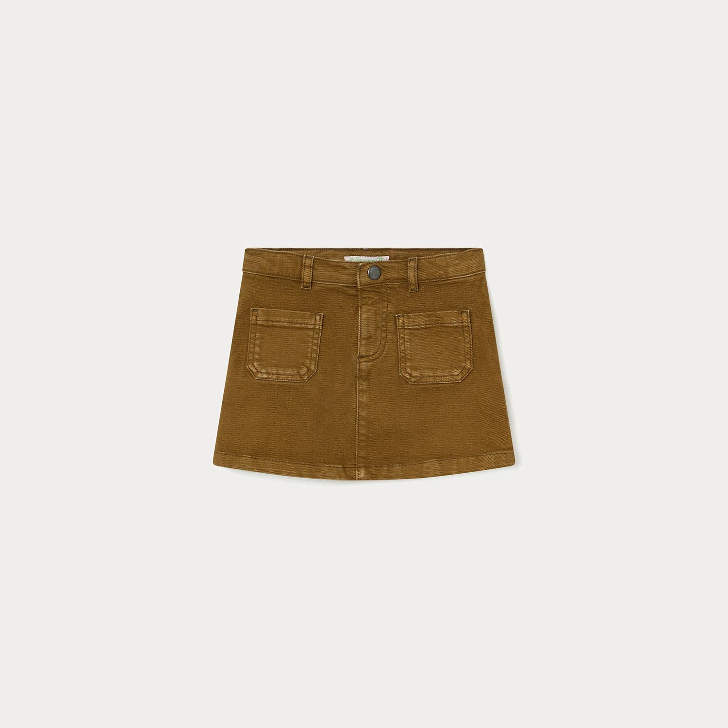 La jupe Tison en jean pour fille se caractérise par sa couleur tendance. Les deux poches plaquées devant renforcent son charme.