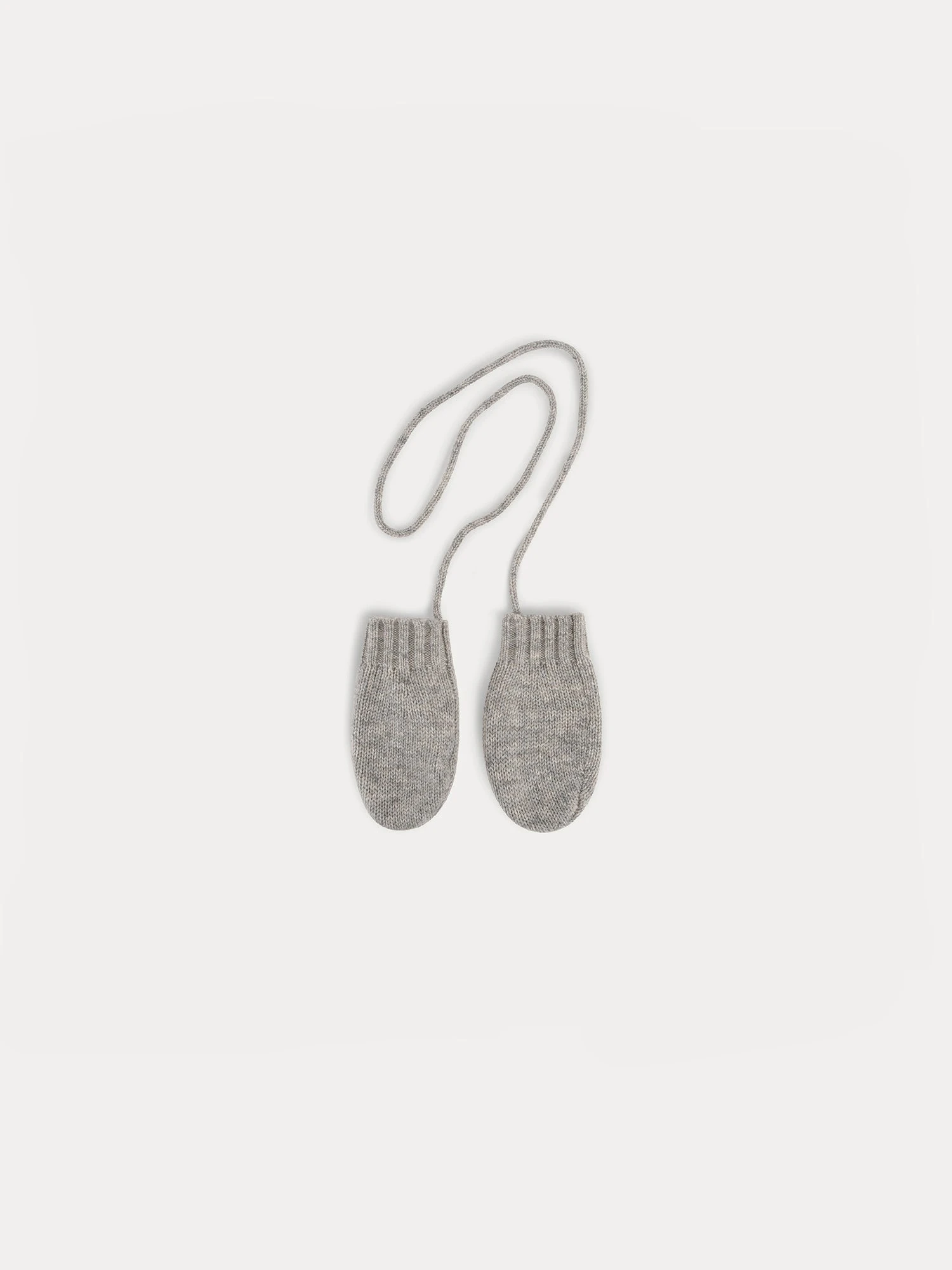 Avec ces adorables moufles en cachemire à poignets côtelés, bébé a les mains au chaud. On aime le côté rétro de ces accessoires gris chiné clair, reliés entre eux par un cordon pour bien rester en place.