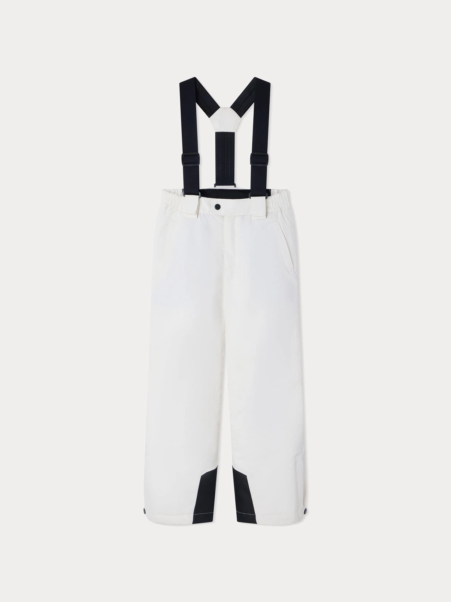 En polyester recyclé, ce pantalon de ski imperméable unisexe Dodji adopte une forme salopette confortable avec de larges bretelles fixes réglables. Le bas des jambes ajustable bénéficie de renforts.