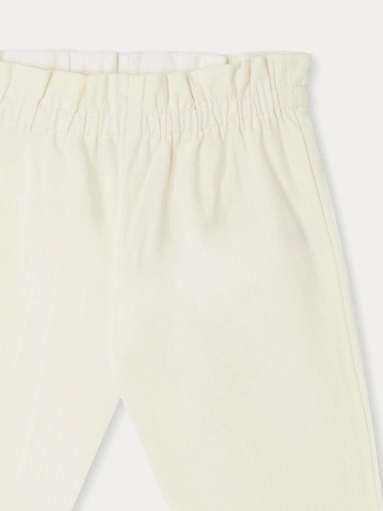 Ce pantalon pour fille Luciole mise sur le confort et l’élégance avec sa taille élastiquée froncée. Le bas de jambe est large pour un enfilage aisé et un confort optimal.