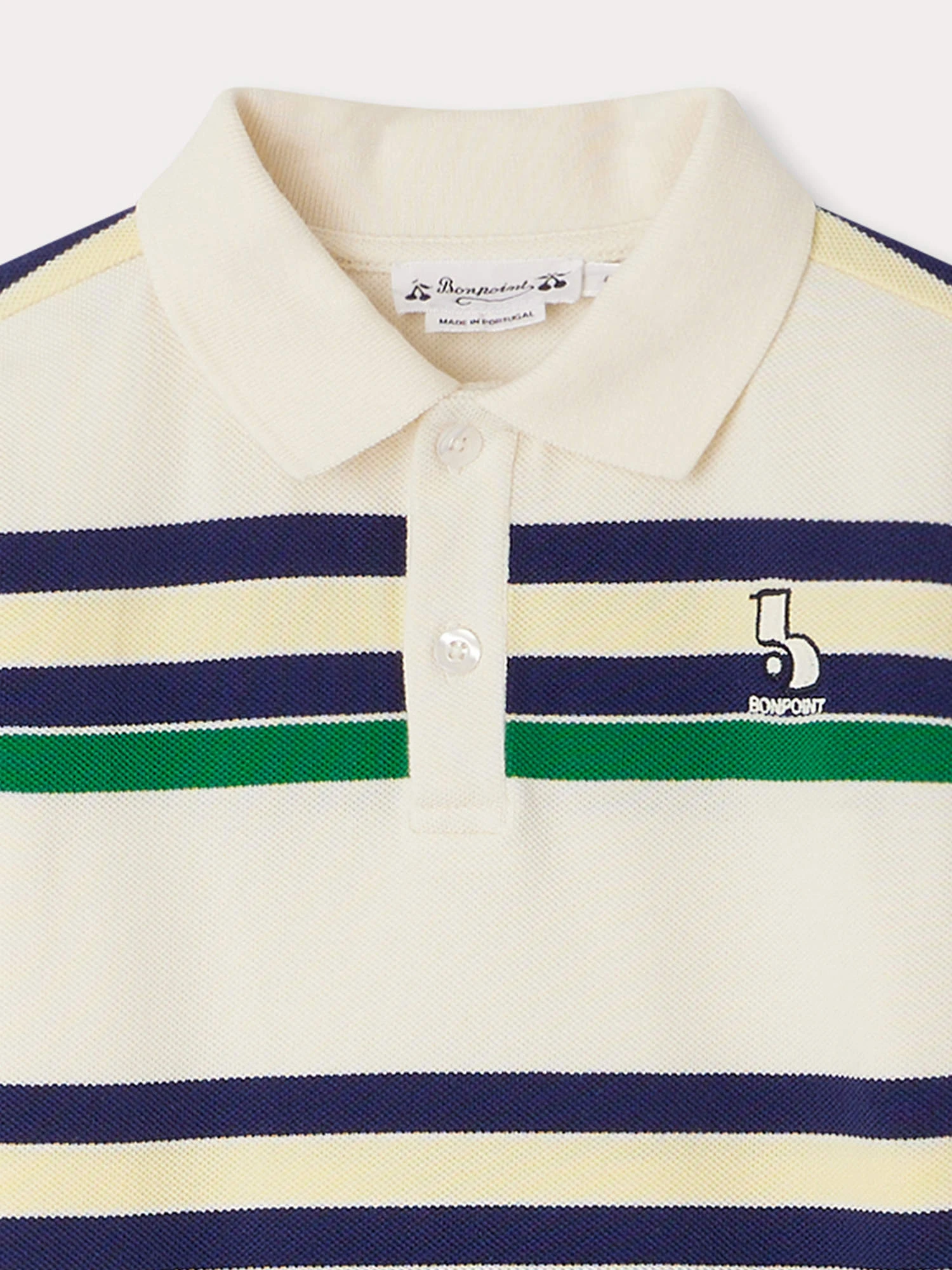 Le polo Daryl pour garçon se décore d’un jeu original de rayures horizontales sur toute sa surface. Le logo de la Maison est brodé en contraste sur la poitrine.