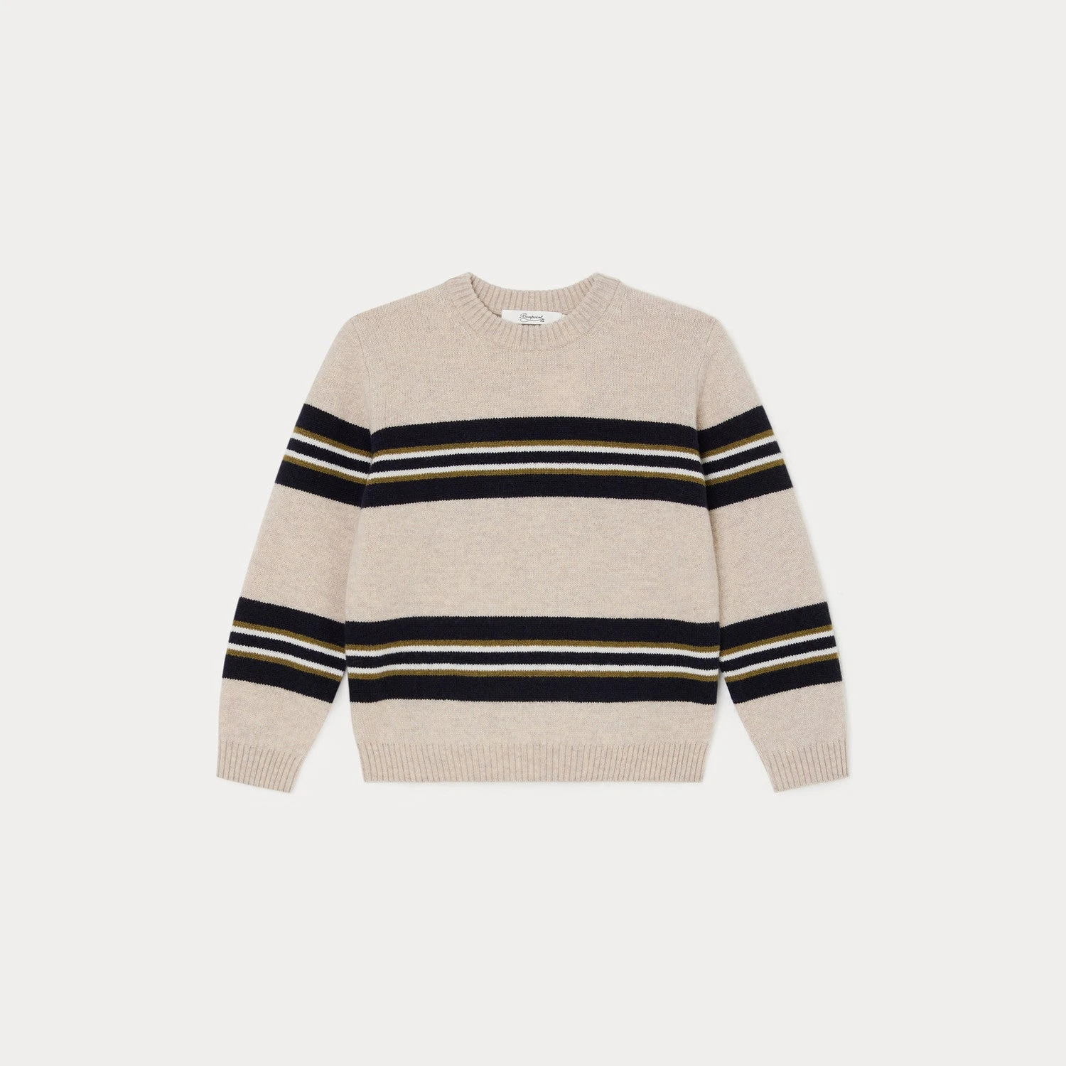Ce pull Branco pour garçon est conçu en laine mérinos fine, éthique et responsable. Sa coupe sport carrée est mise en valeur par un jeu de larges rayures placées. A la fois douce, résistante et biodégradable, cette fibre naturelle est particulièrement conçue pour les peaux les plus sensibles. L’exigence dans le choix de matières de qualité confère à cette pièce de durer et d’être transmise de saison en saison.