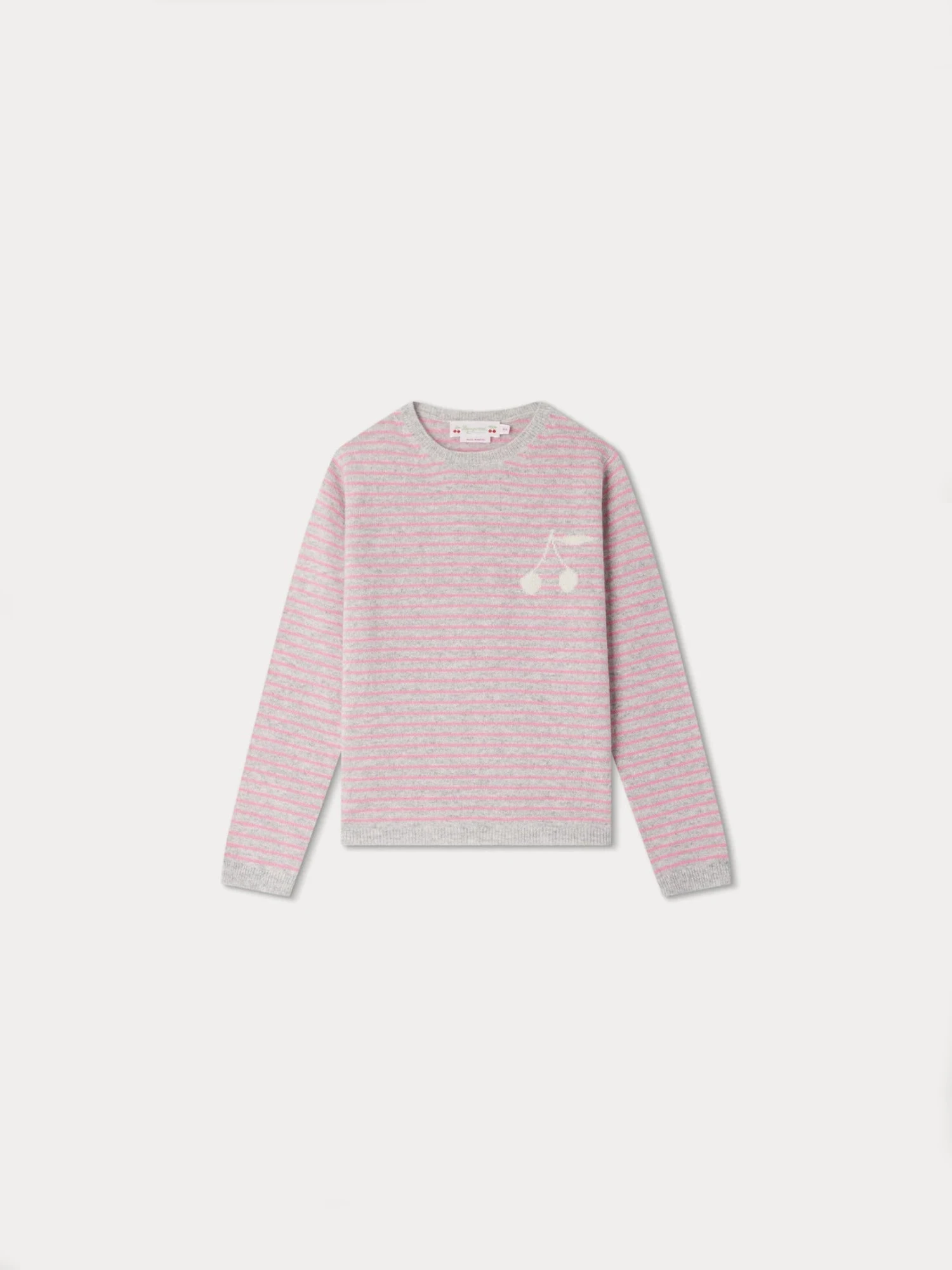 Orné de rayures, le pull en cachemire Brunelle pour fille dispose d’un col rond et de manches longues. Ce modèle iconique de la Maison est signé d’un motif cerise en intarsia sur la poitrine.