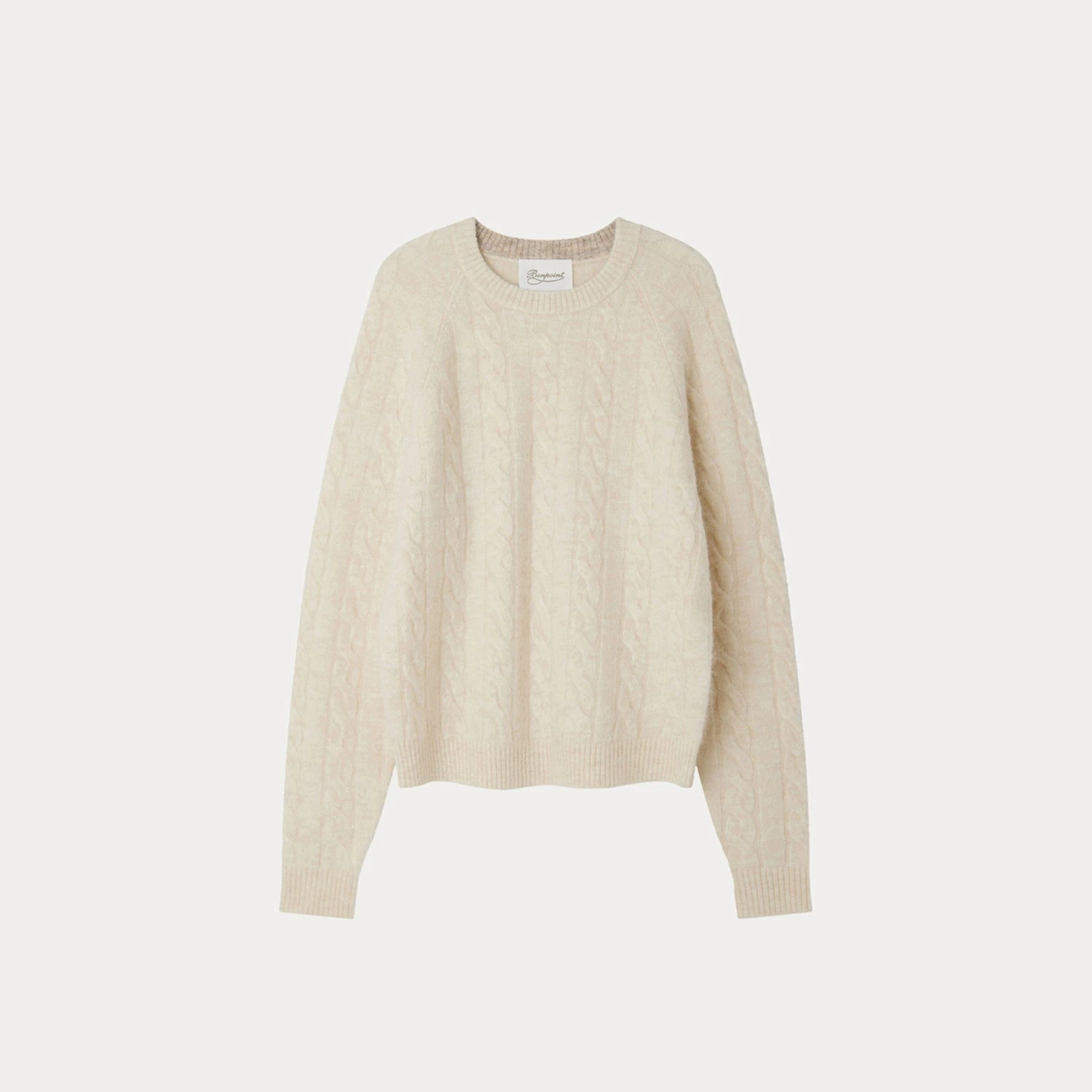 En pur alpaga uni, à la fois chaud et léger, ce pull Manille pour femme joue avec les volumes. Orné de torsades et côtes plates sur l’ensemble, il associe col rond et manches raglan légèrement allongées.