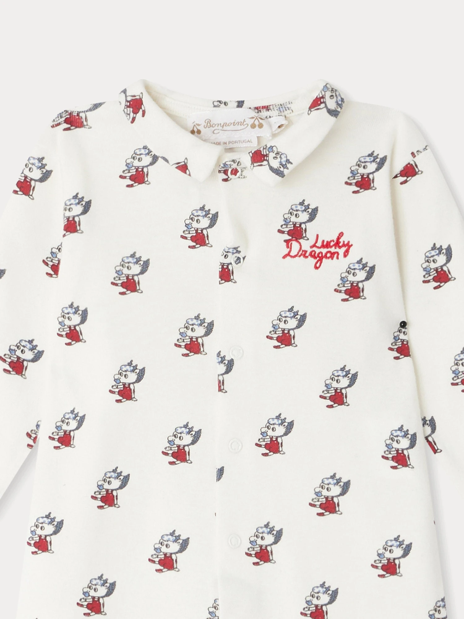 Ce pyjama sans pieds Brynel pour bébé séduit par son motif Lucky Dragon intégral et sa broderie sur la poitrine. Il est confectionné en coton issu de l’agriculture biologique.