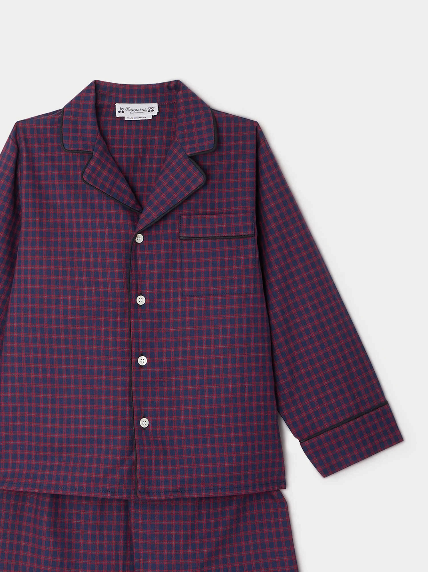 Ce pyjama pour garçon Dormeur rivalise d’élégance avec son haut à col chemise et son motif à carreaux. Il se dote de passepoils au bas des manches et des jambes, sur la poche et le long de l’ouverture. Accompagné de sa pochette, il constitue un joli cadeau pour les fêtes de fin d’années.