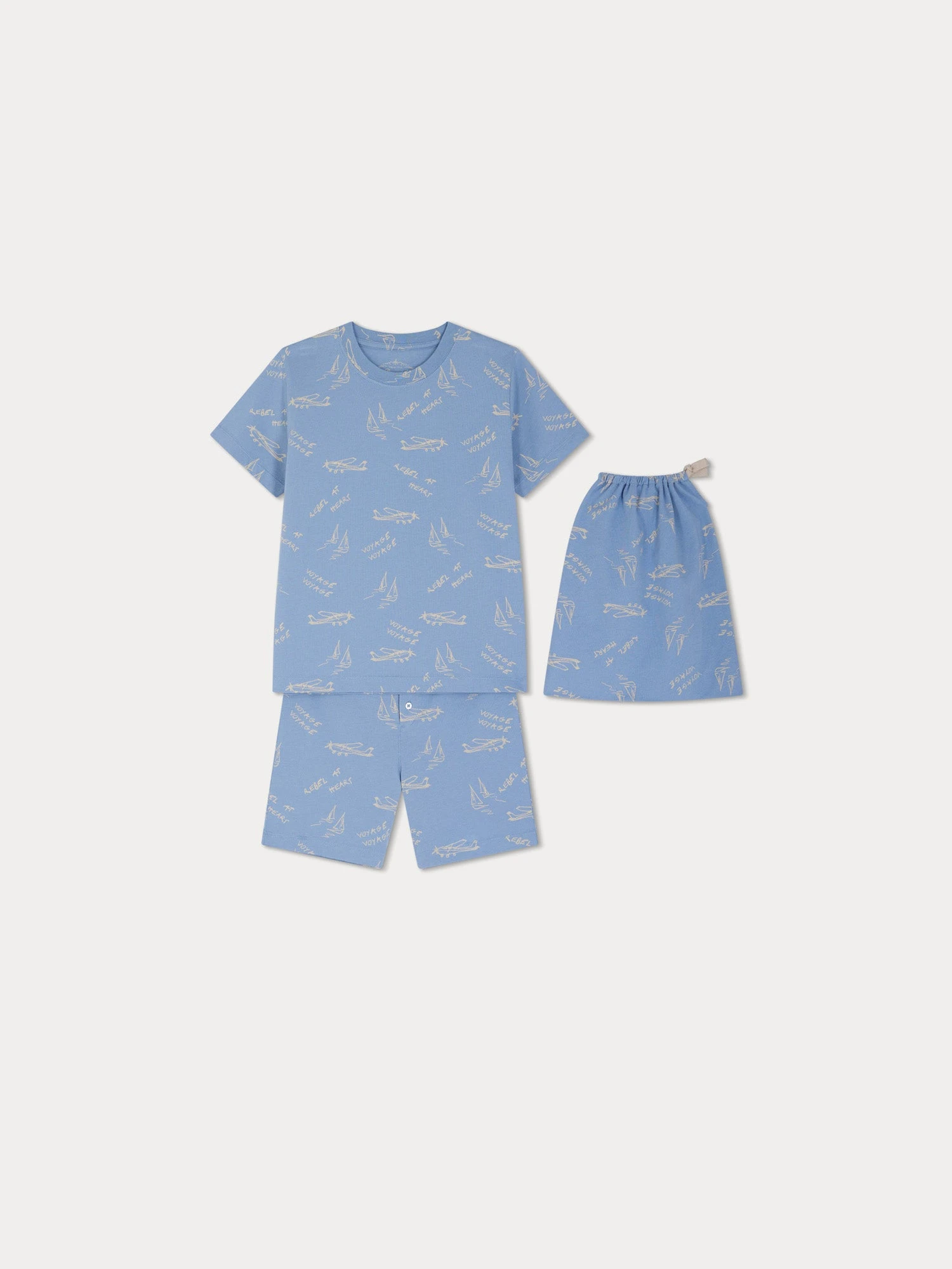 Confectionné en coton biologique, ce pyjama court pour garçon Flaubert invite au voyage. Il est vendu dans une élégante pochette à cordon assortie.
